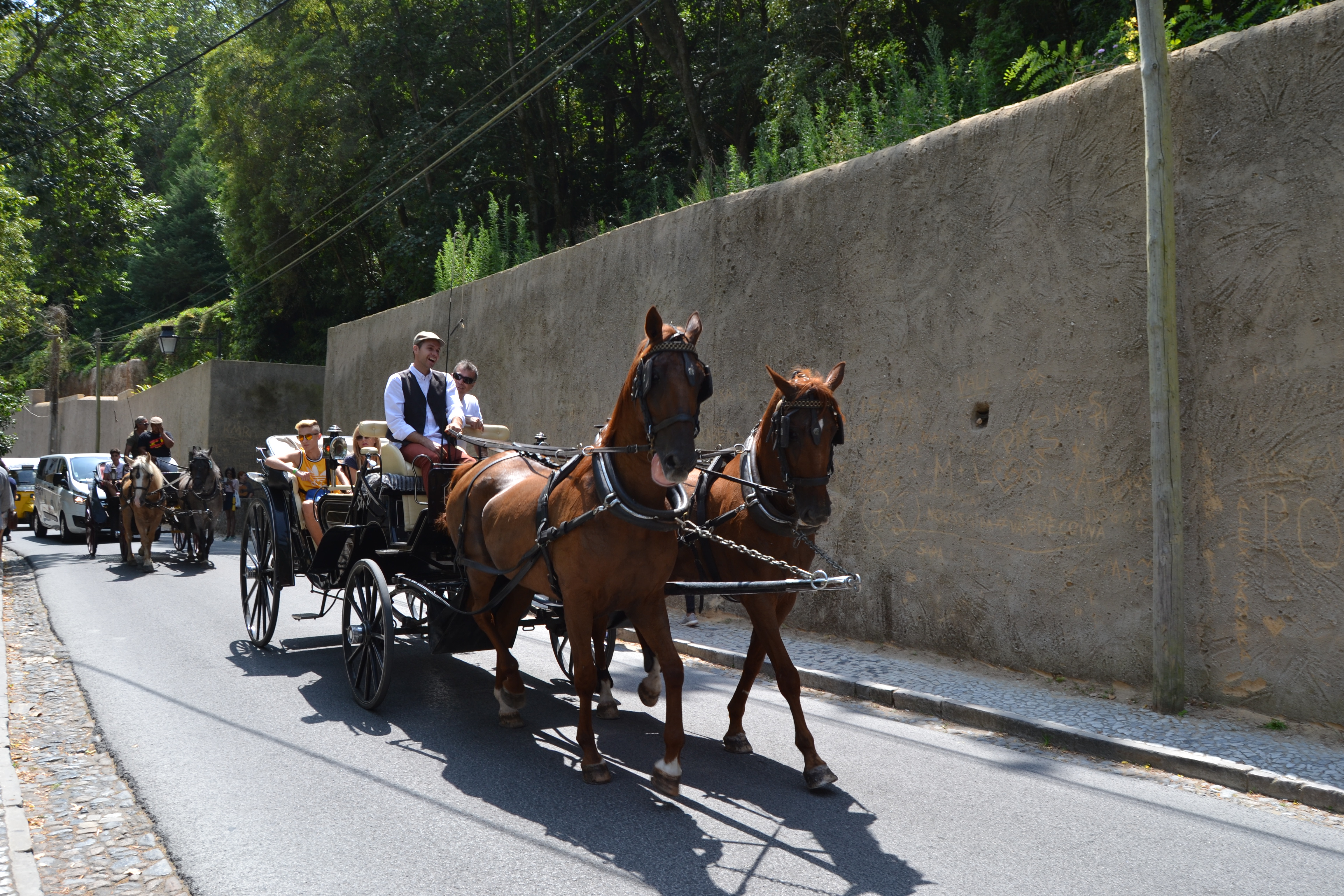 O percurso é todo ele em tons de verde, onde percorremos densas florestas, cruzamo-nos com pedras cobertas de musgo e paisagens espetaculares sobre a costa atlântica. Pelo caminho, parámos em Colares que é uma pequena povoação virada para o mar, localizada nas vertentes inferiores da serra e rodeada por jardins e vinhas.