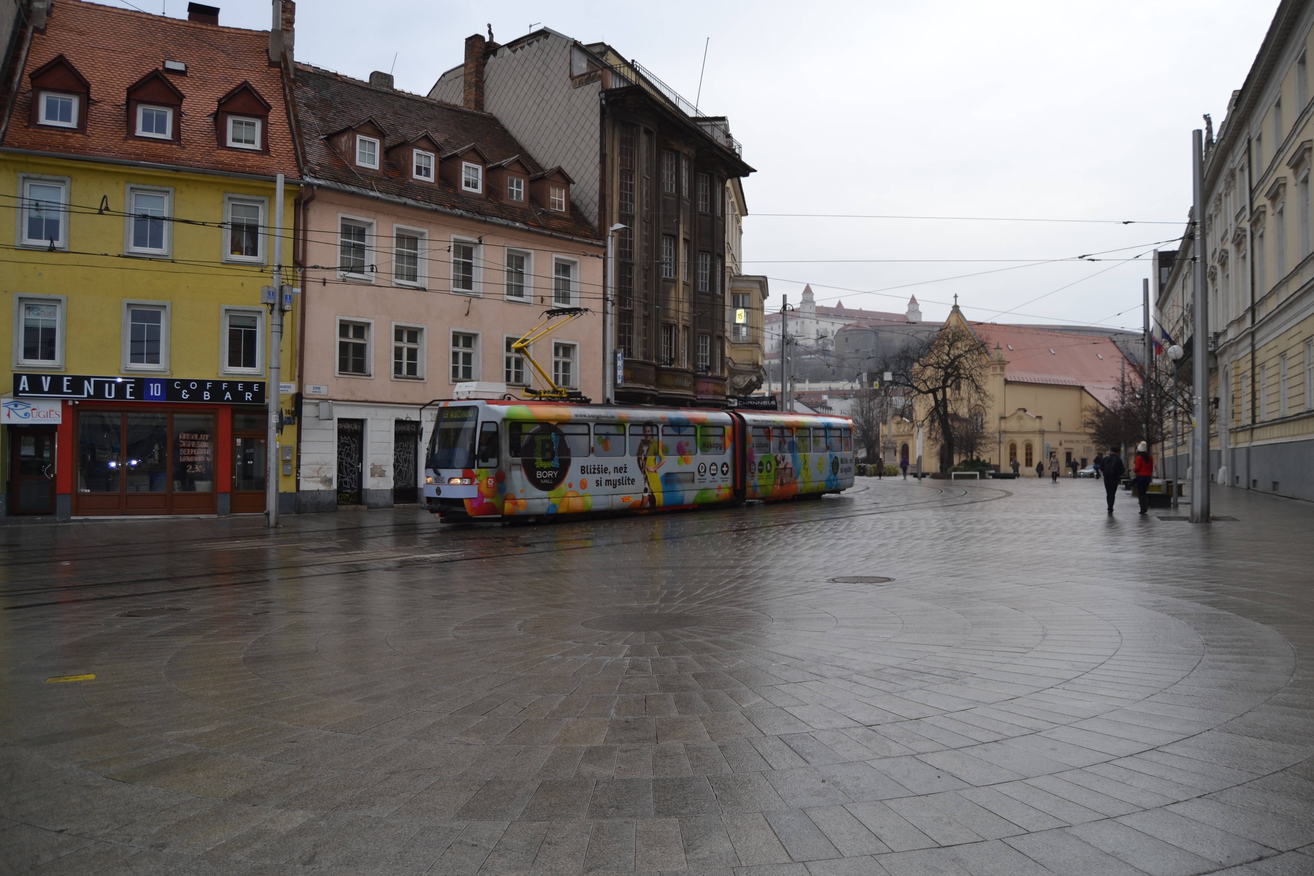 Chegámos por volta das 7h30, era domingo, o tempo estava chuvoso, poucas pessoas nas ruas e a maioria dos estabelecimentos comerciais estavam fechados. A estação de comboios de Bratislava está localizada no centro da cidade que, sendo tão pequenina, não necessitaria de qualquer outro meio de transporte para a visitar.
