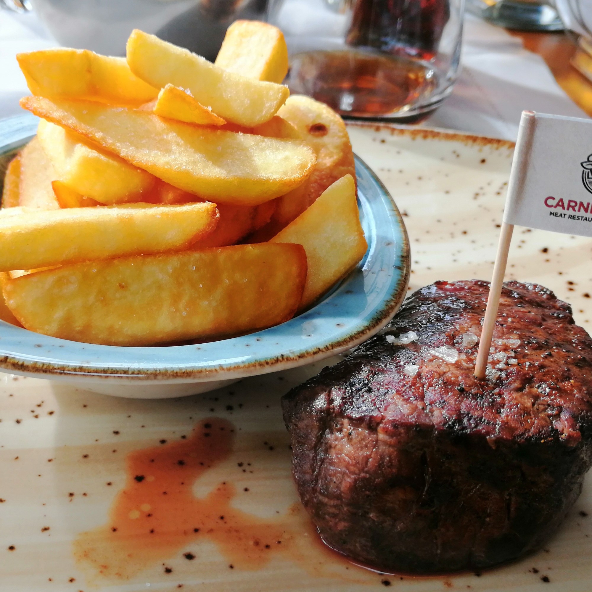 A paragem para o almoço não podia faltar e dita seja a verdade que não faltam locais para comer, para todos os gostos e carteiras. Tínhamos lido que Bratislava é uma cidade barata, mas a verdade é que não sentimos isso, ou por outras palavras, não tivemos grande tempo para o constatar e o nosso almoço acabou por ficar acima do que esperávamos. Acabámos por almoçar no restaurante Carnevalle. A Eslováquia é tipicamente um país de carne. Comemos Hubová Polievka, que é uma sopa à base de cogumelos, “Grain Fed Beef Filet” e “Rib Eye USDA”.