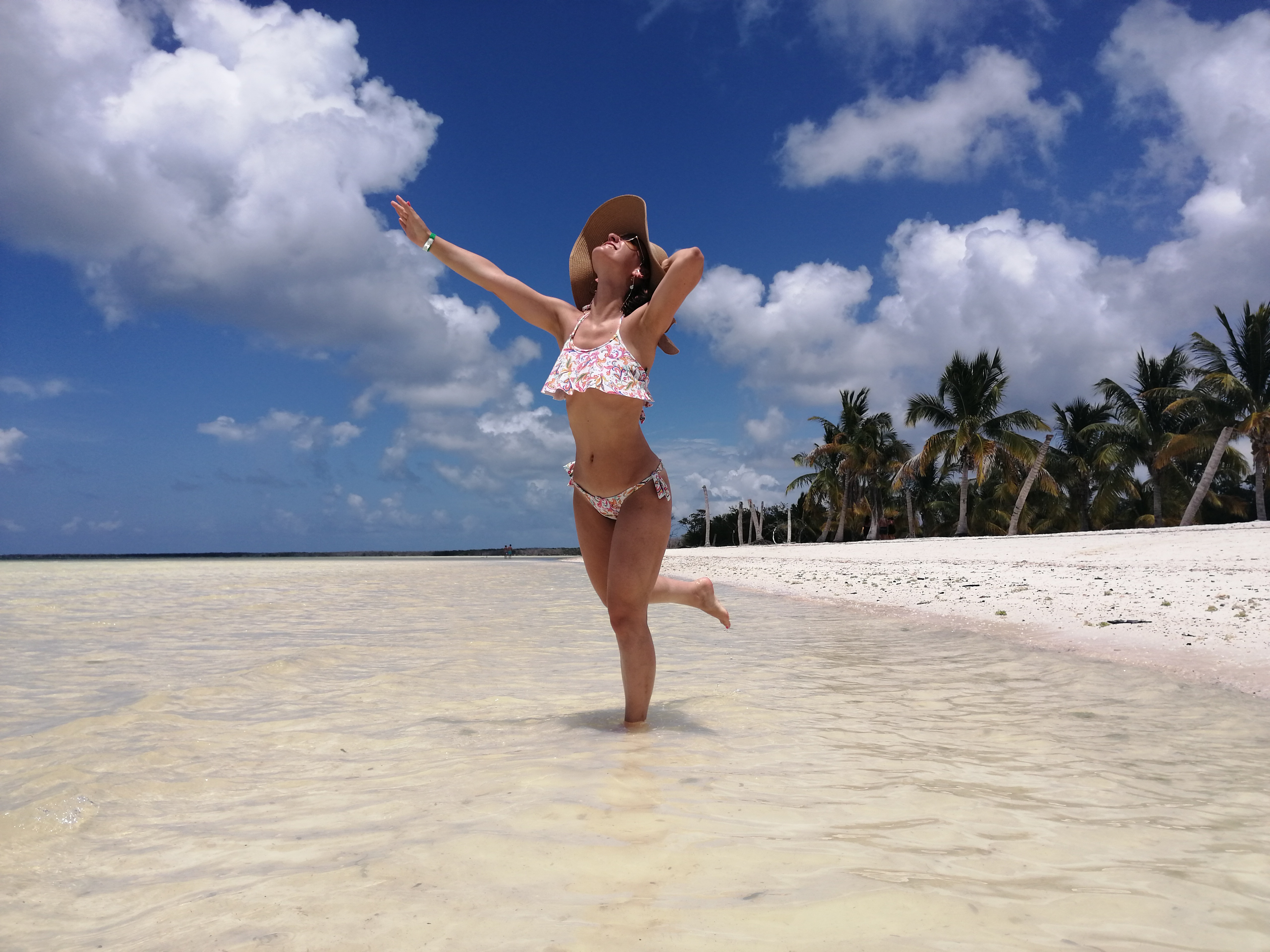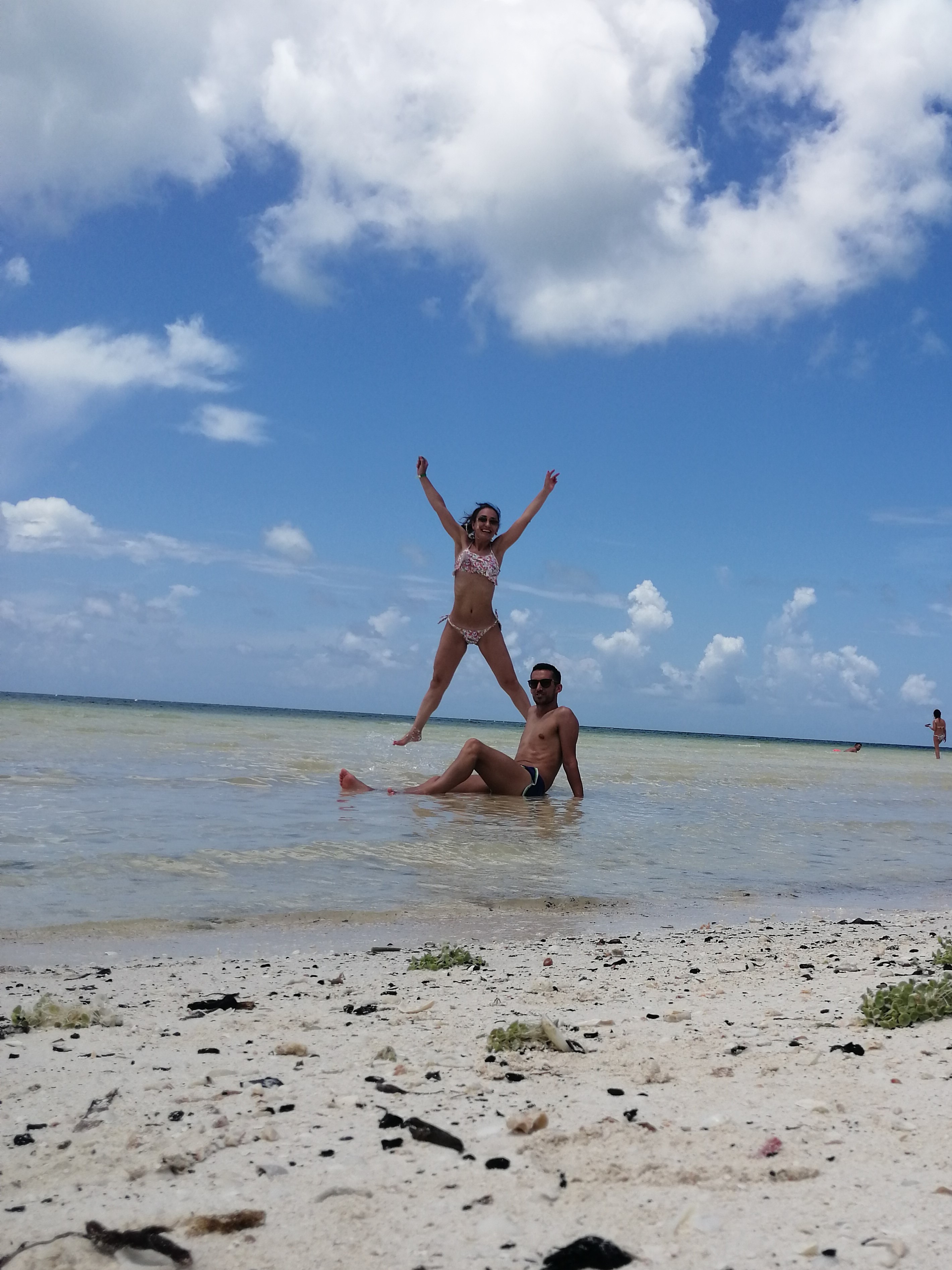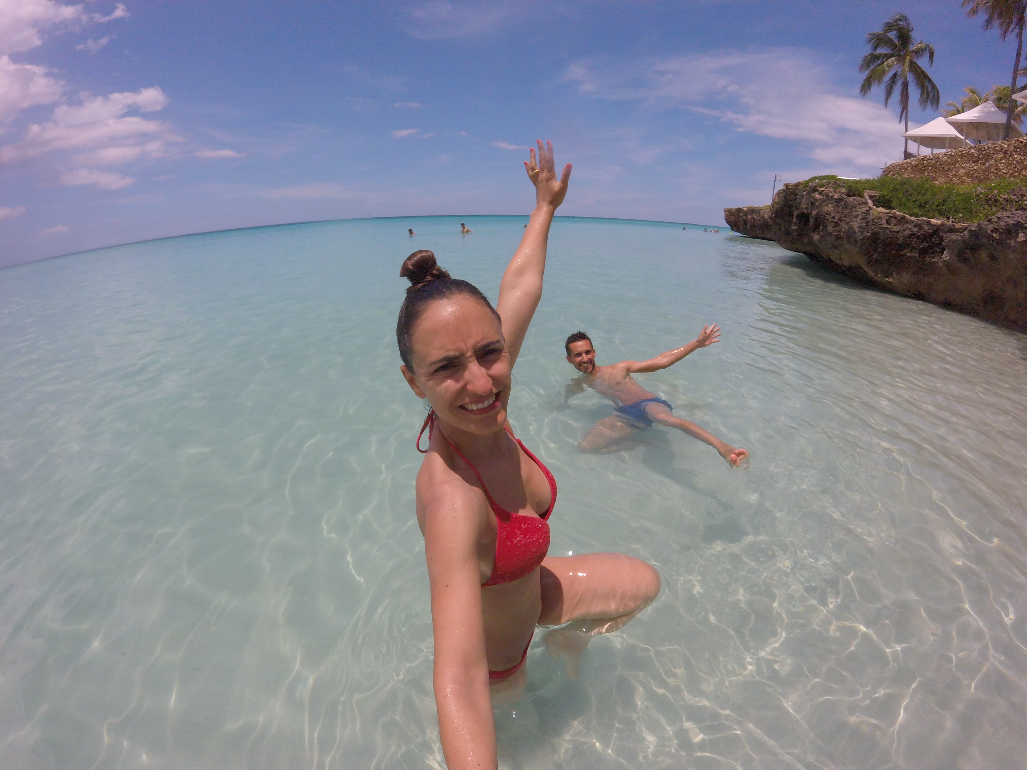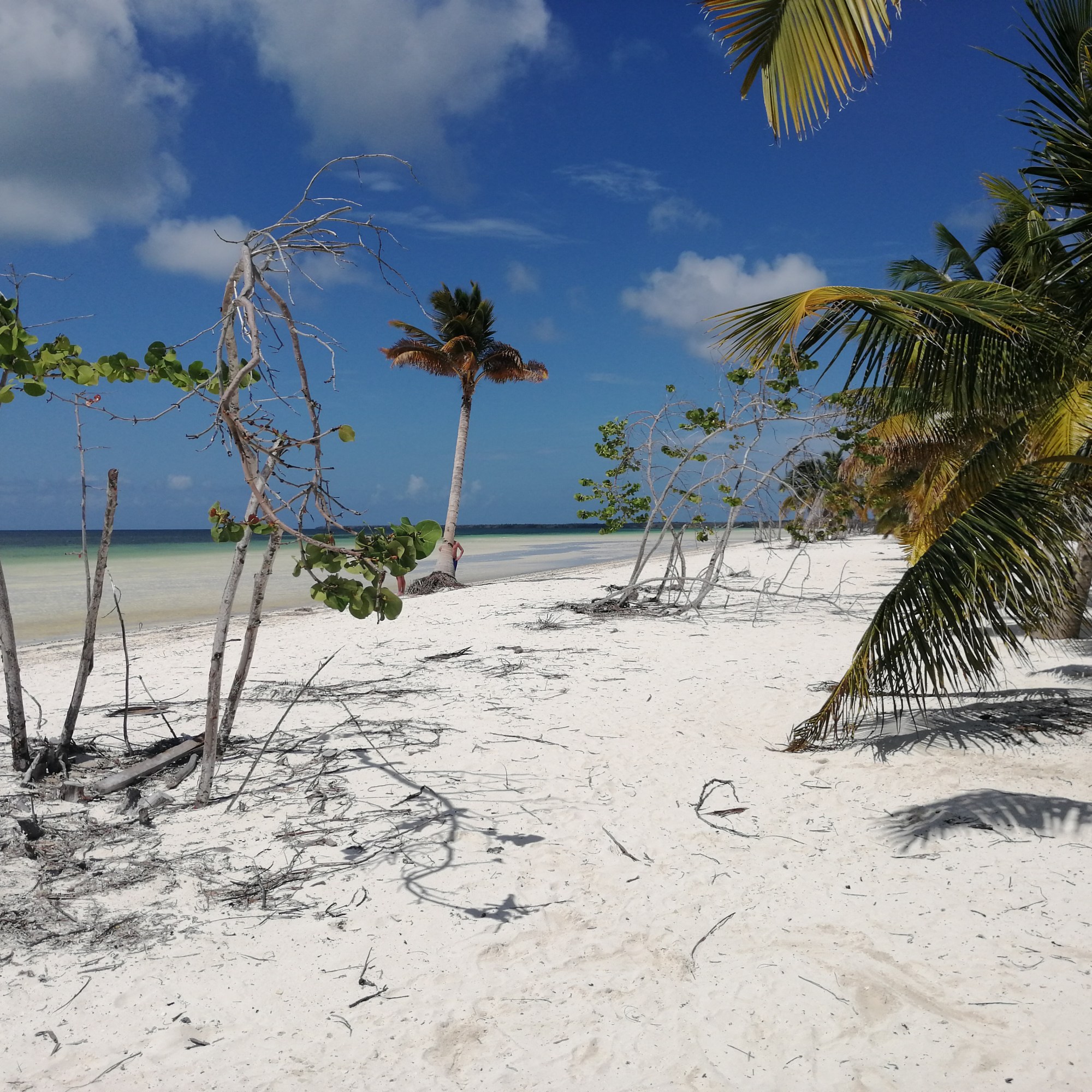 Mais um bocadinho e chagámos a Cayo Blanco, uma ilha paradisíaca deserta. Ainda que com algumas nuvens, o calor era imenso e não havia ponta de vento. A água é quente. A areia é tão fina que parece farinha e tão quente que queima a planta dos pés. Na ilha existe apenas um espaço para as refeições, uma cozinha/bar de suporte e casas de banho. A paragem para almoço e para aproveitar a praia foi de quase 3 horas.