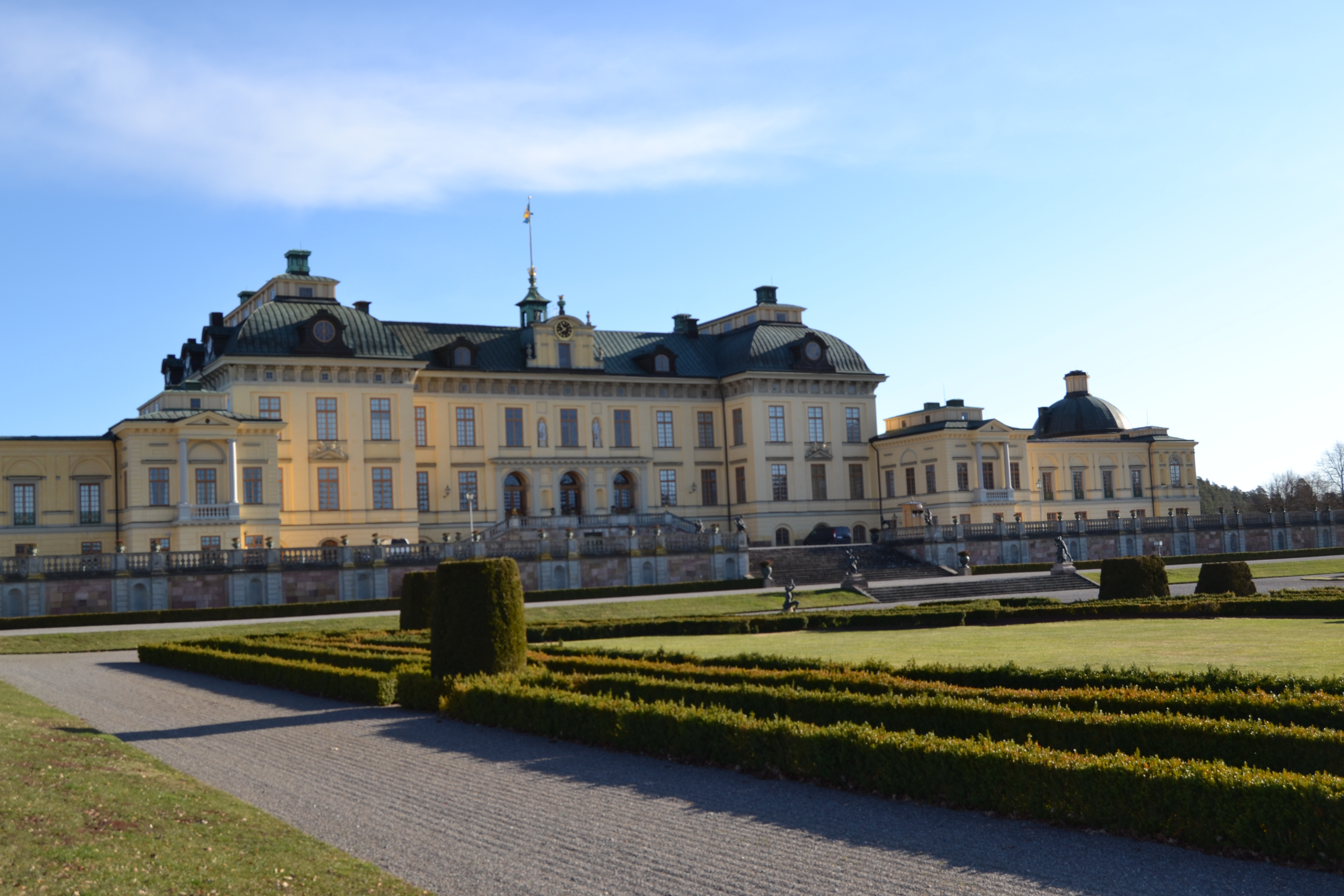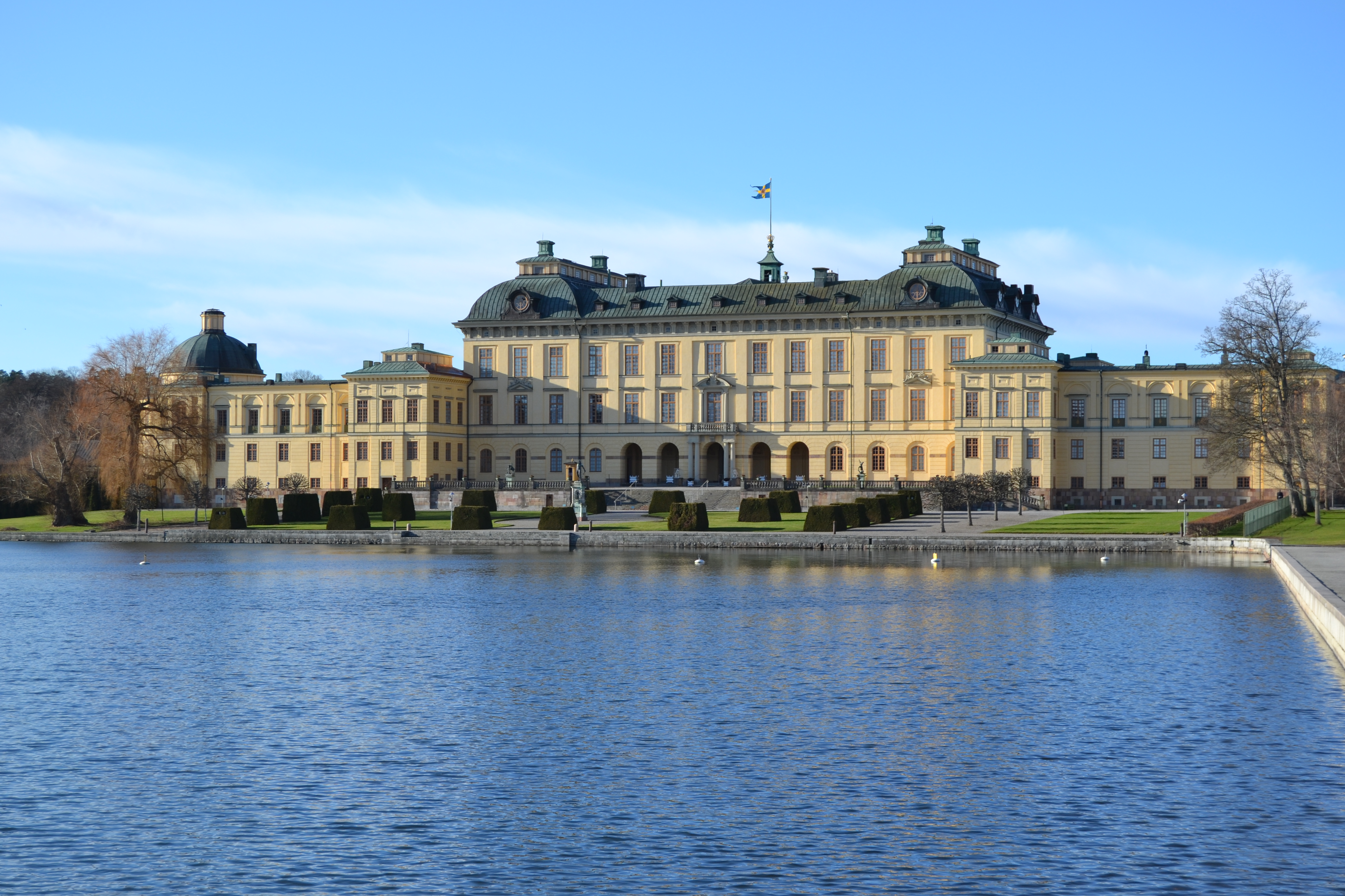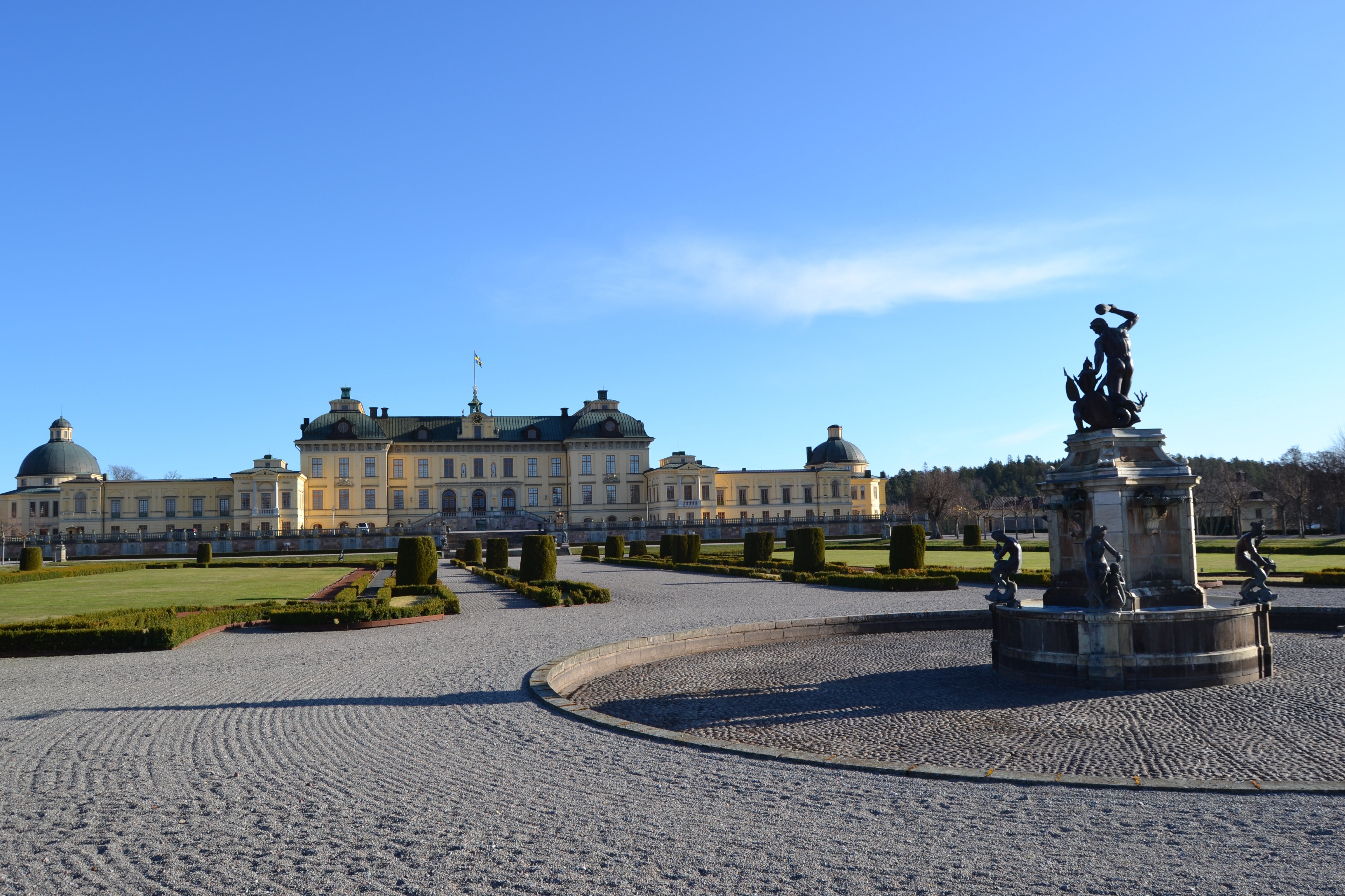 Na ilha de Lovon, já fora do centro da cidade mas não muito distante, encontra-se o Palácio de Drottningholm, a residência privada da família real sueca. Já tinha lido bastante sobre o Palácio e por isso a curiosidade em conhecer era grande. Apesar de ser fora do centro da cidade, o Magno fez-me a vontade e lá fomos nós: apanhámos o metro até Brommaplan e depois um autocarro (176-177 ou 301-323) até Drottningholm. A viagem dura cerca de trinta minutos e faz-se tranquilamente.