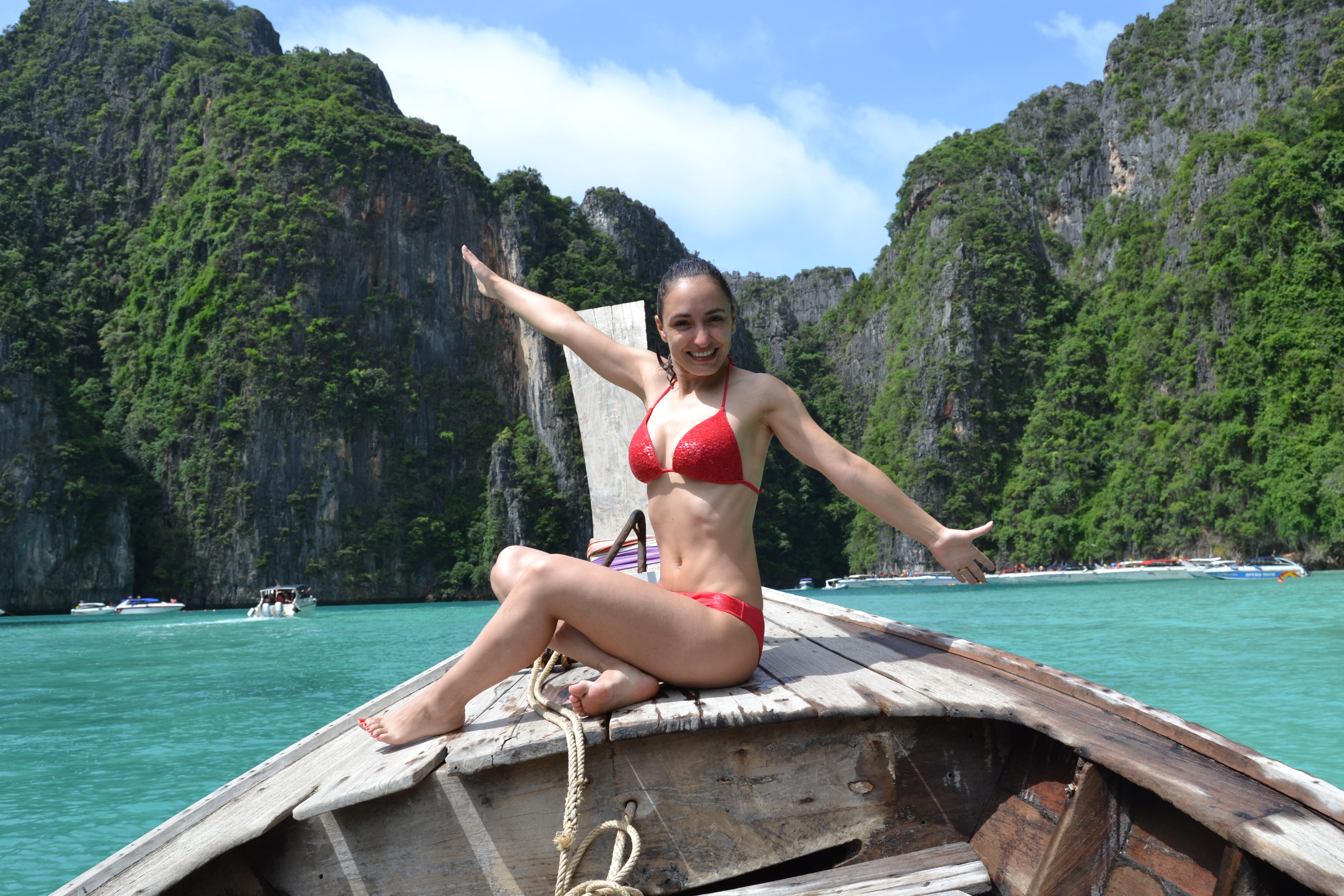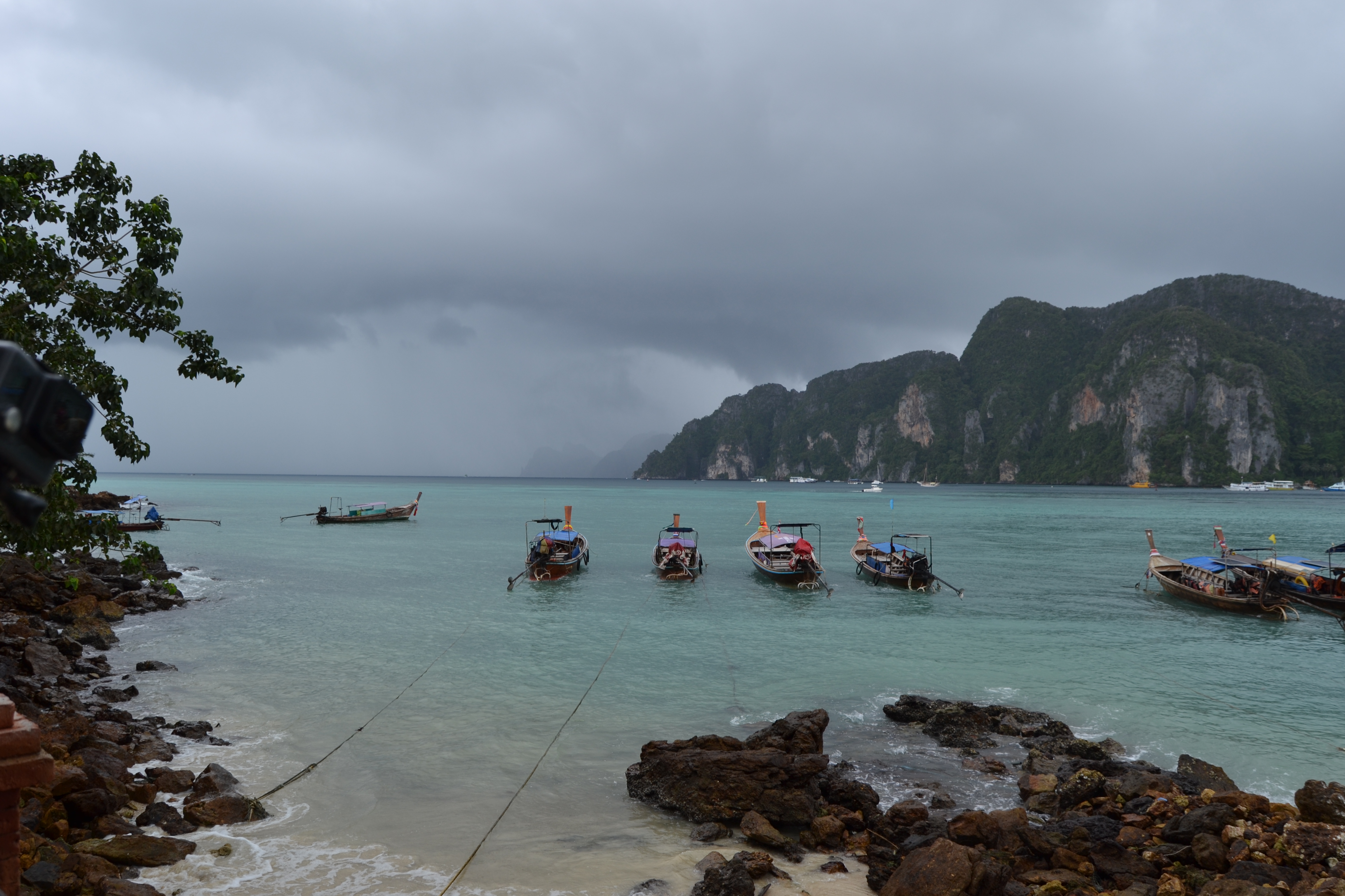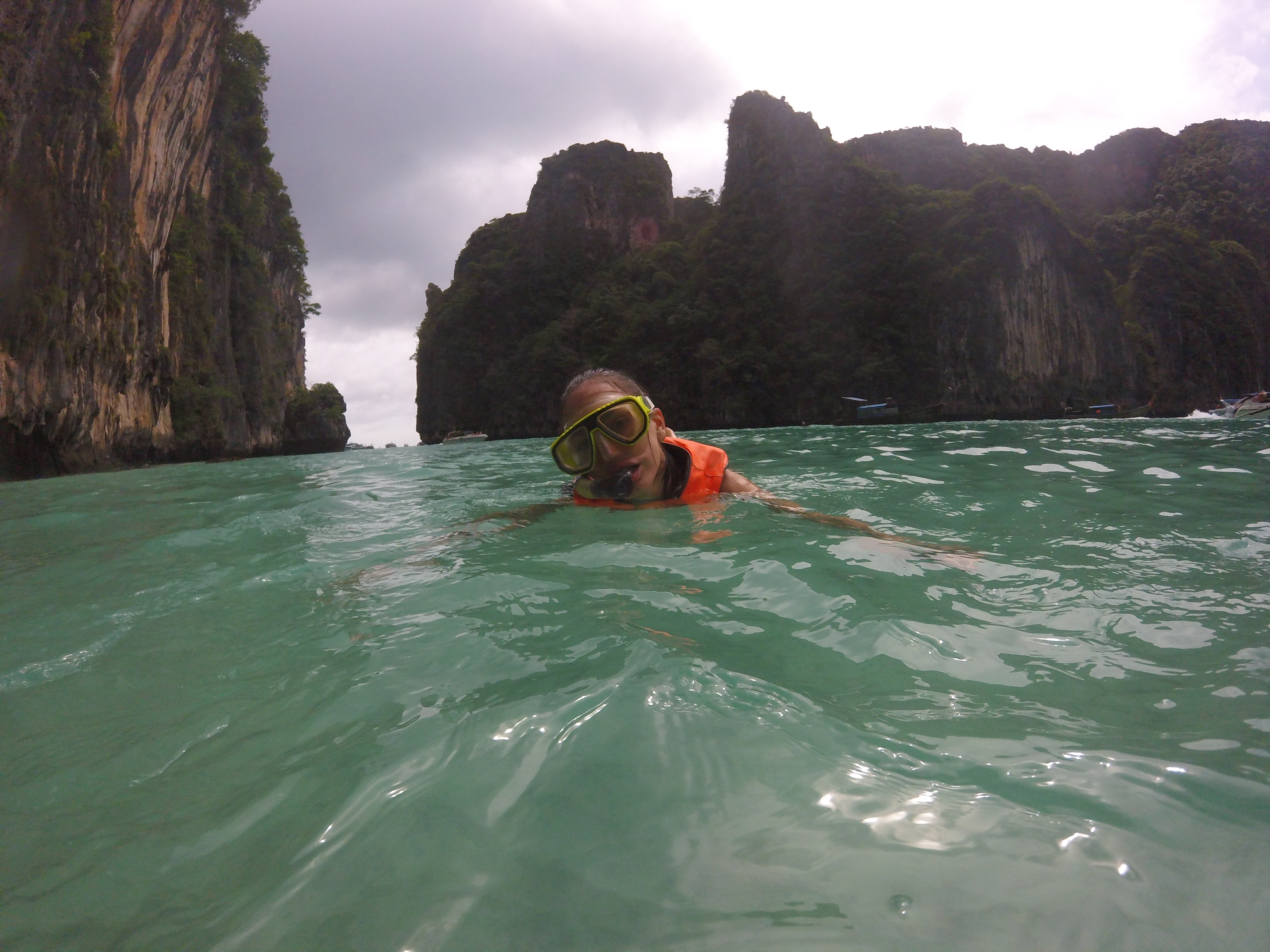 O tempo estava bastante instável mas permitiu visitarmos “Monkey Beach” localizada em Phi Phi Don, fazer snorkeling em Pi Leh Cove, localizada na ilha Phi Phi Leh, e por fim visitarmos a famosa praia de “Maya Bay“, também na mesma ilha.