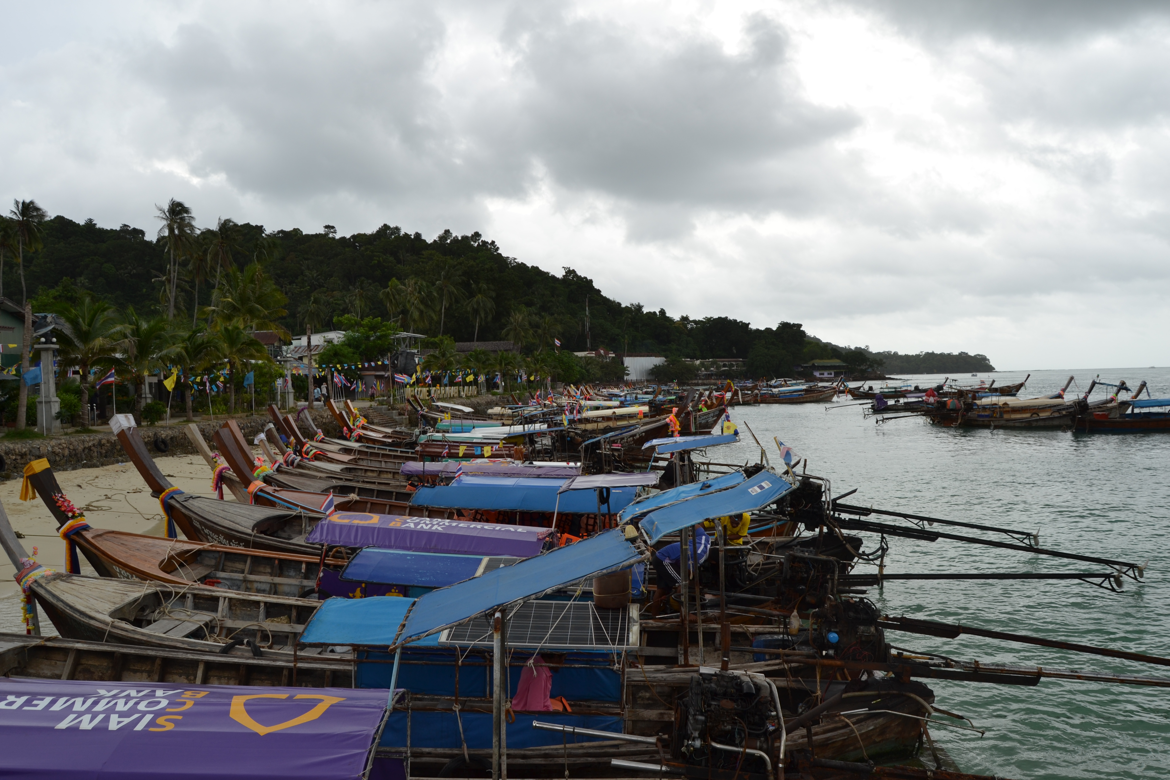 Como já referi, nas traseiras do hotel existe uma população de pescadores e, tal como já tínhamos reparado, a Eva e o Luis também repararam: podíamos visitar as outras ilhas com eles. Na manhã do dia seguinte, saímos com um pescador a bordo de um Long Tail Boat.