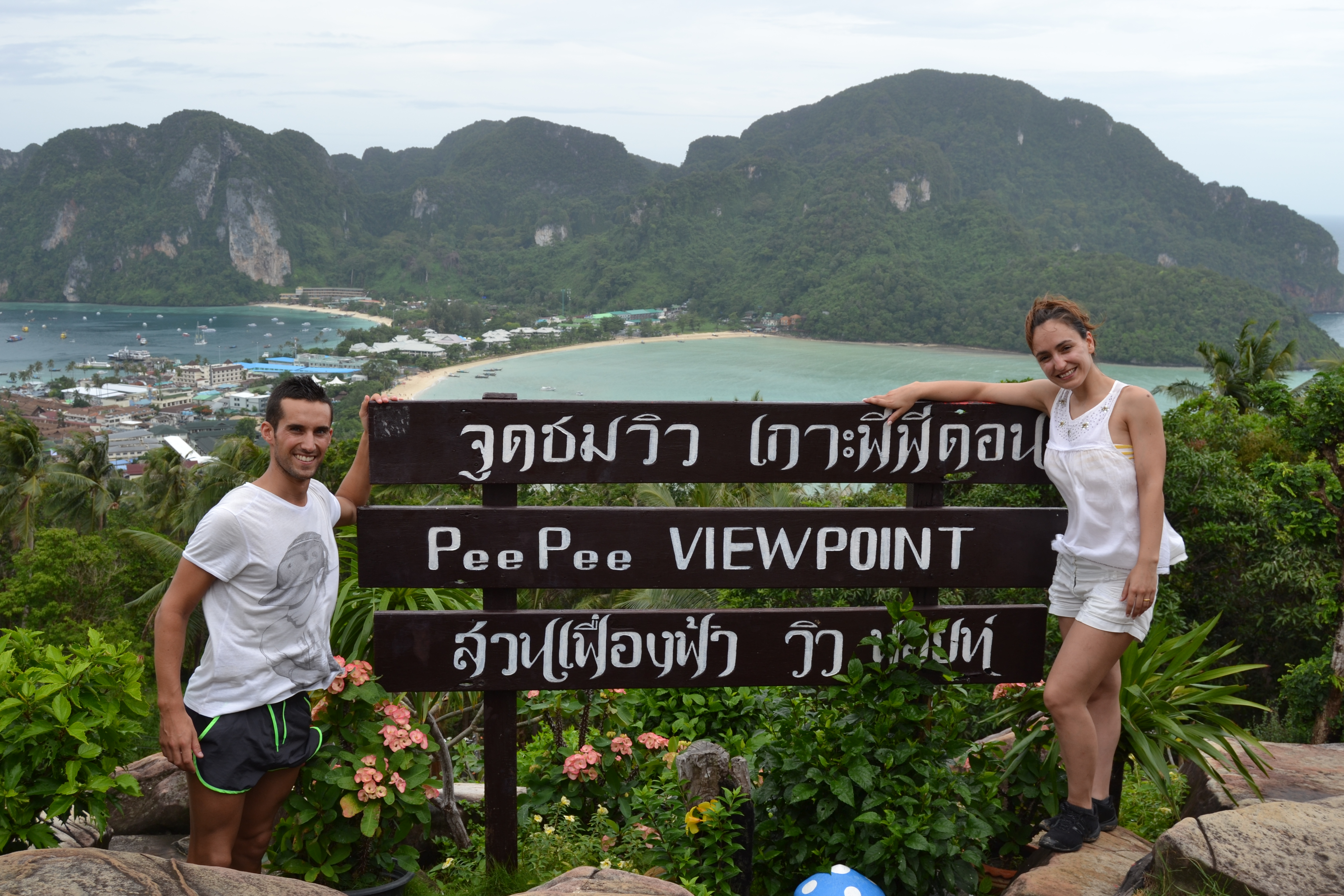 Procurámos o famoso miradouro que é o postal das Phi Phi e que oferece uma vista maravilhosa sobre o centro da ilha. Andámos quilómetros pelo meio da floresta, quando podíamos ter abreviado a subida por uma viela bem mais a direito. Não importa: a descida foi por aqui e a caminhada feita para a subida valeu bem a pena.