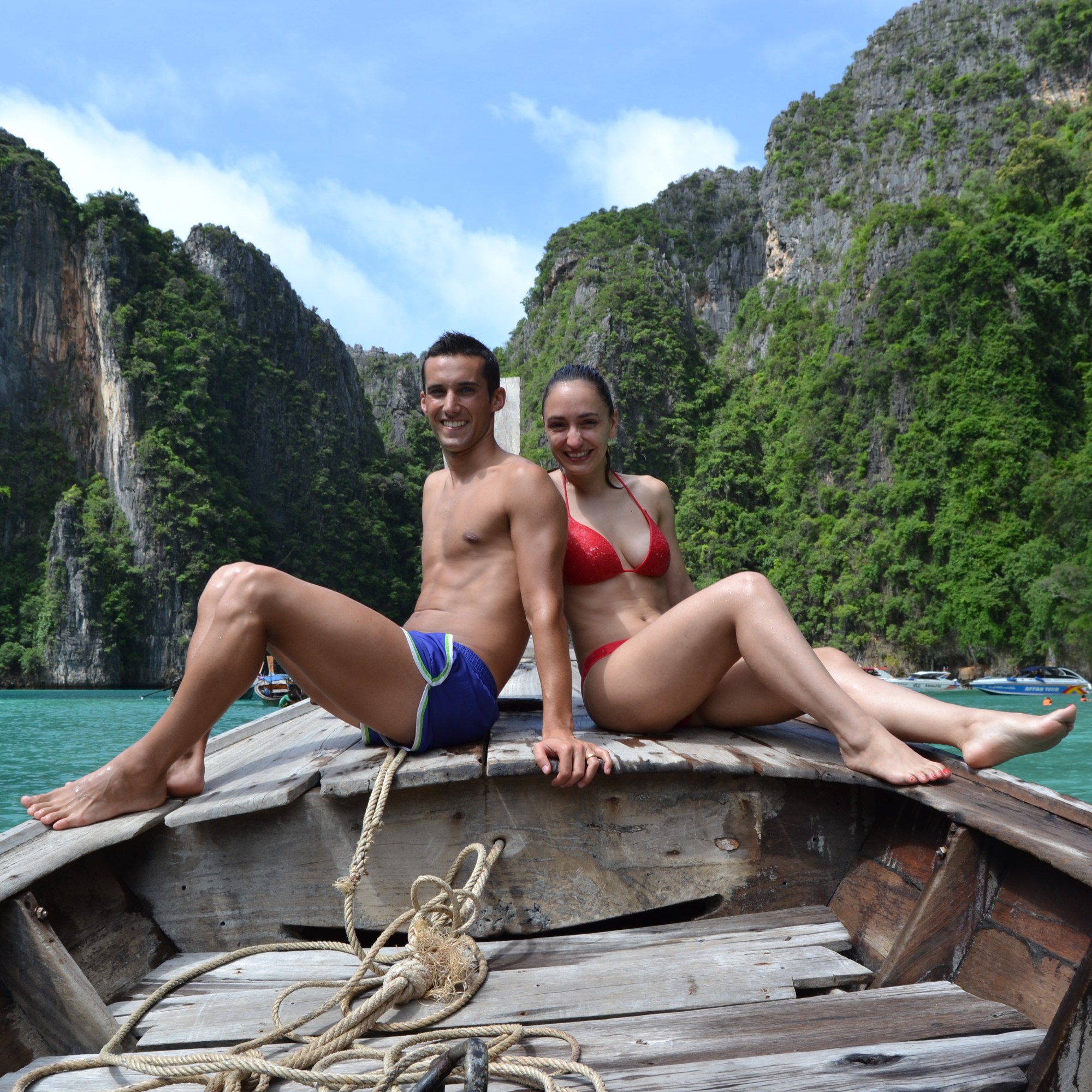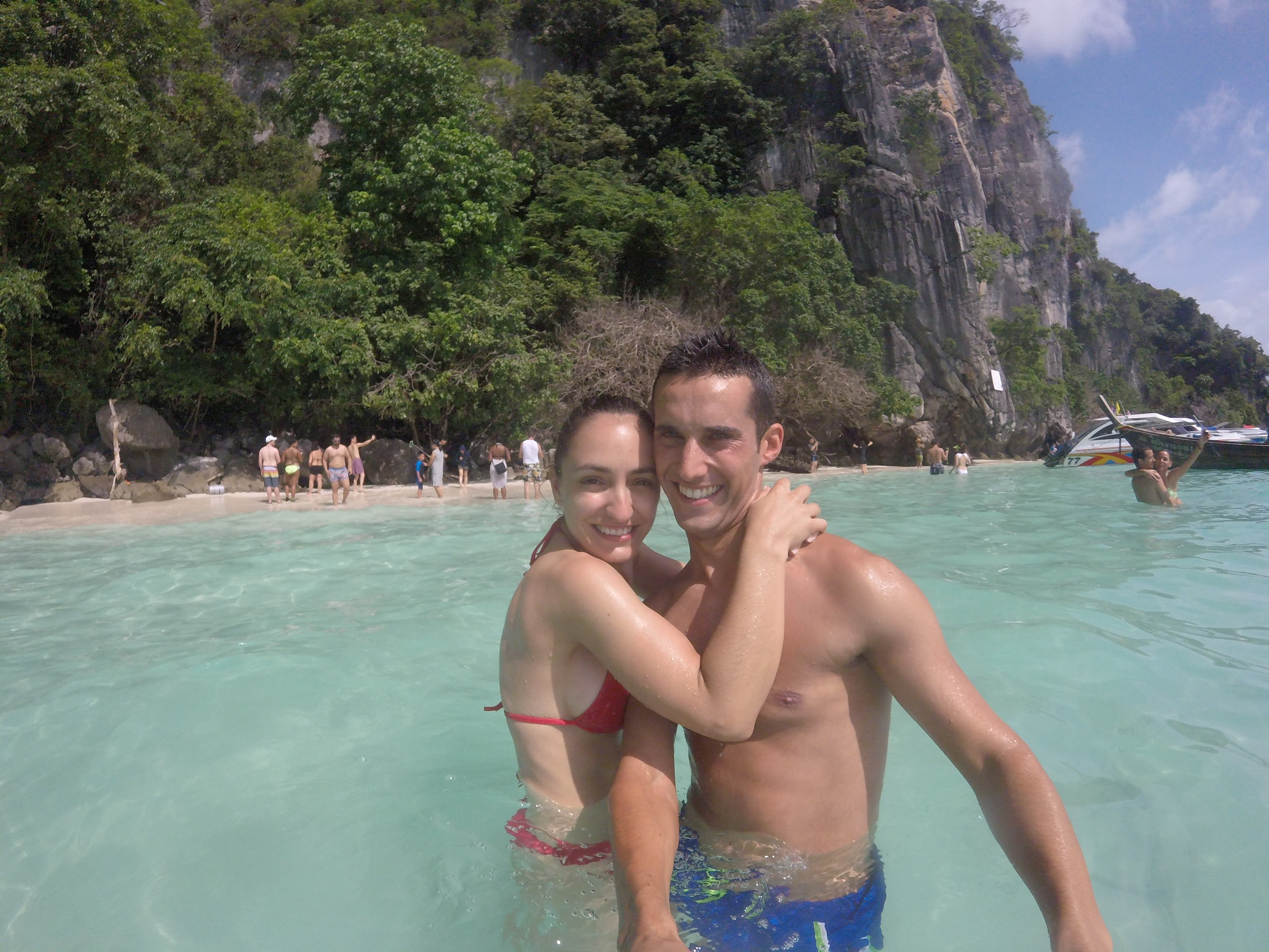 Os famosos Long Tail Boats (barco típico tailandês) levaram-nos de regresso ao hotel e foi aqui que conhecemos a Eva e o Luis, dois portugueses que tinham acabado de chegar às Phi Phi. É uma sensação incrível quando começamos a ouvir falar uma lingua que nos é familiar: de repente pensamos estar em casa. Embarcamos no mesmo barco, com o mesmo destino. Depois desse dia, fizemos praticamente todas as atividades em conjunto.