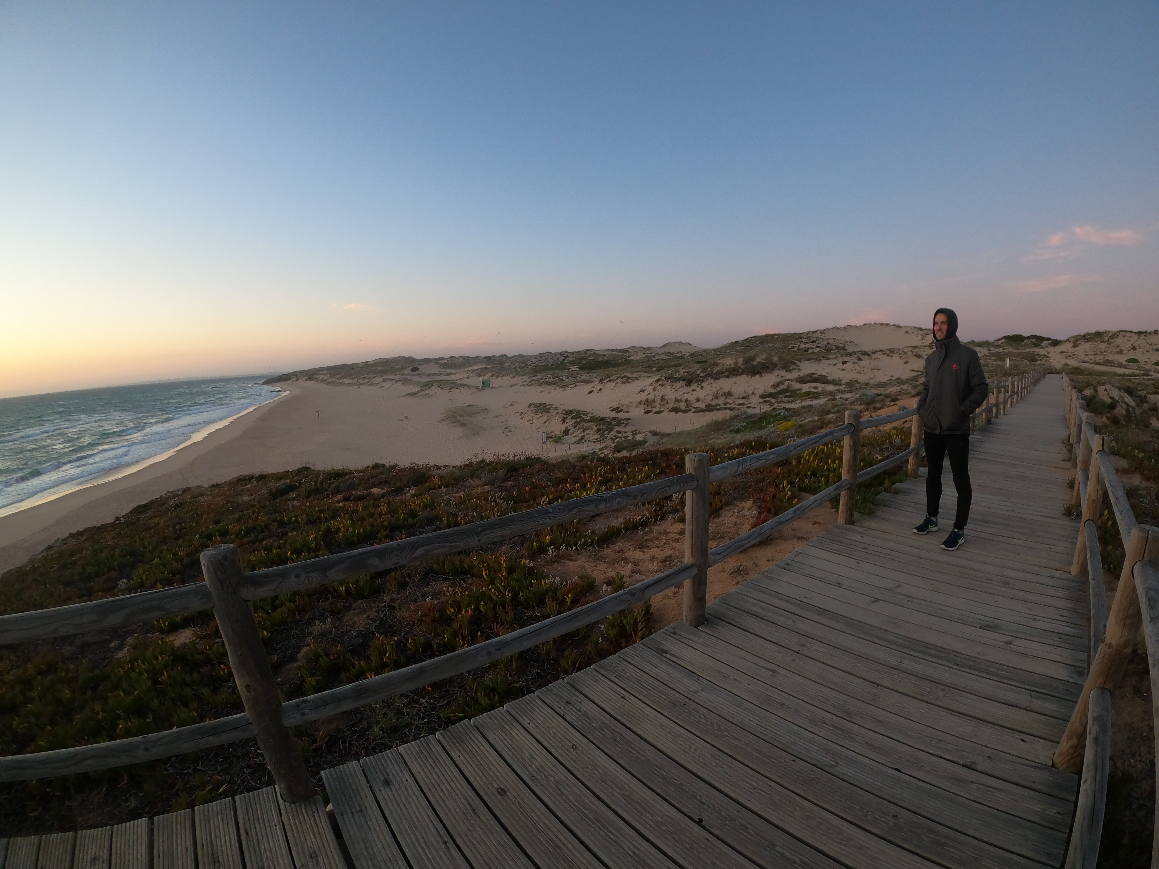 O dia tinha sido bastante longo e, como o sol estava escondido, achámos que era o momento de parar para descansar. Assim, já na penumbra, estacionámos a autocaravana no pequeníssimo parque de estacionamento da Praia Vale dos Homens e por aqui pernoitámos, sem qualquer noção da incrível paisagem que viríamos a descobrir na manhã seguinte.