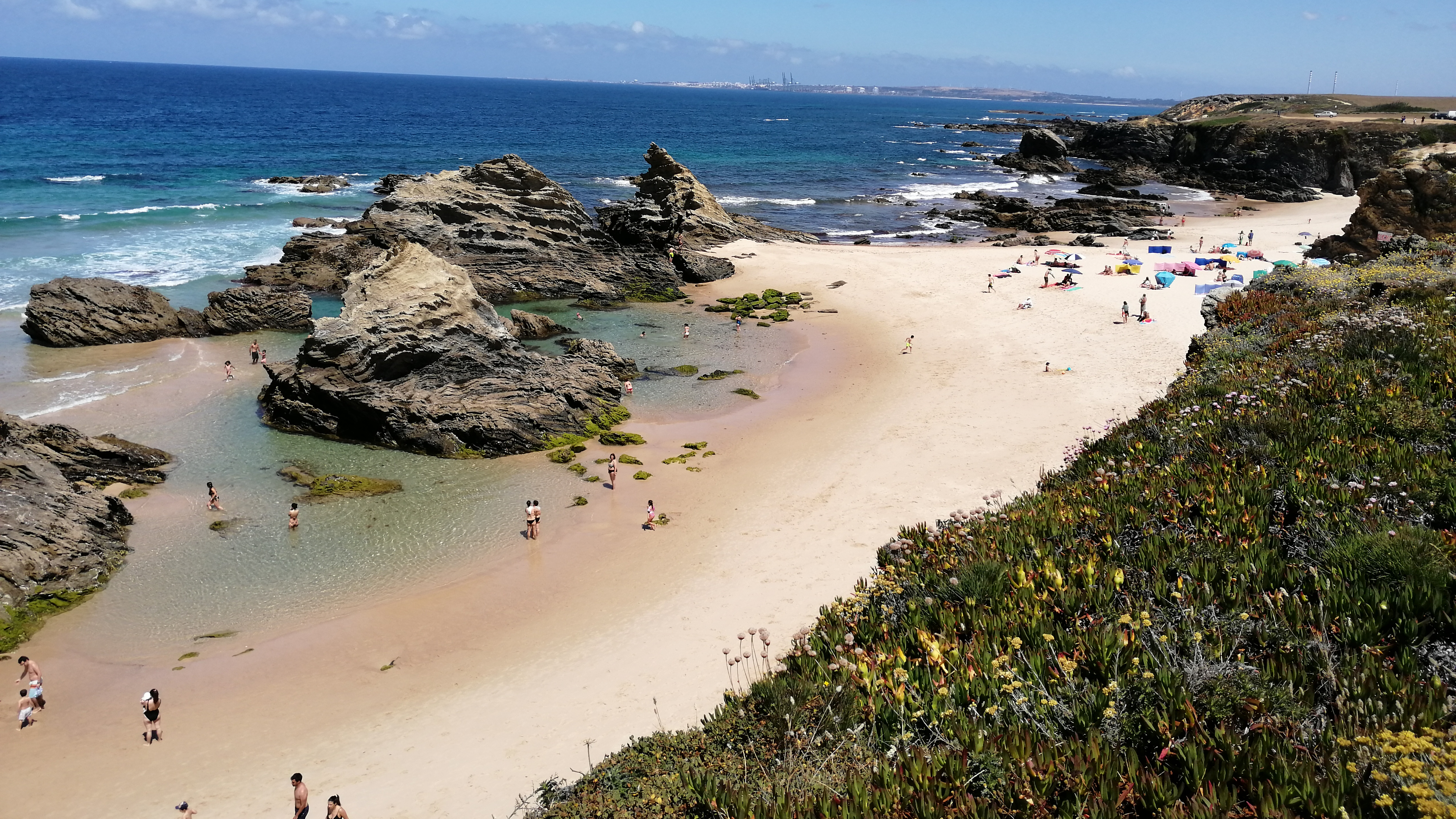 Zambujeira do Mar esperava por nós. Encontrámos uma vila movimentada e solarenga, mesmo a convidar para um mergulho. E não é que o prémio atribuído pelas “7 Maravilhas – Praias de Portugal” na categoria “Praias Urbanas” não podia ter sido melhor atribuído? É sem duvida a fusão perfeita entre a praia e o urbano, onde do alto da falésia, junto à Capela de Nossa Senhora do Mar, avistamos esta fusão de incrível beleza.