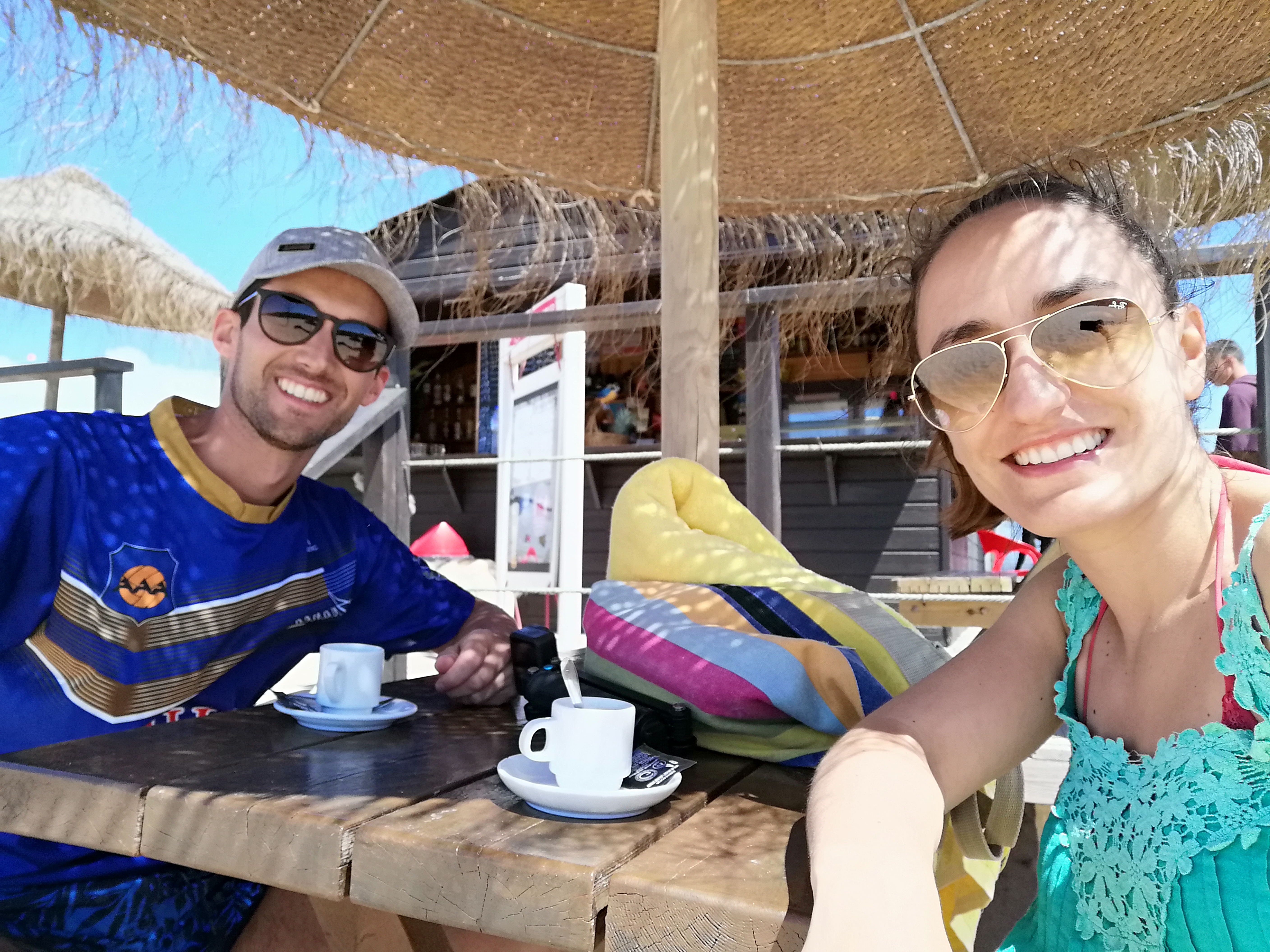 Estacionámos a autocaravana e, depois de almoçarmos, decidimos fazer um bocadinho de praia. Chegámos pelo lado oposto ao oceano e, qual não foi o nosso espanto quando não conseguimos avistar o mar. Do parque de estacionamento em terra batida e atravessámos a Ribeira da Bordeira a pé, onde é possível também fazer praia tranquilamente com crianças. Iniciámos o trajeto pela areia até à beira mar. Pelo caminho e para repôr as energias (sim, a distância é mesmo grande), ainda tivemos oportunidade de tomar café no simpático “Bordeira Beach Bar“.