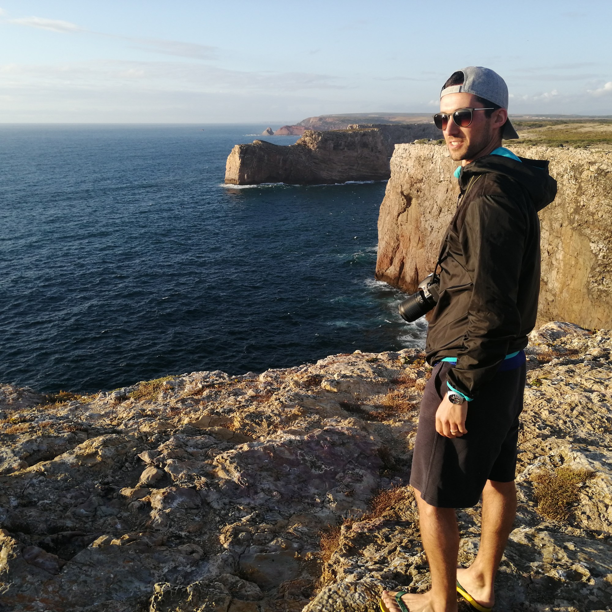 O fim do dia estava solarengo e não podíamos perder a oportunidade de ver este pôr do sol neste ponto tão bonito e importante para Portugal. Por vezes é bem difícil encontrar o tempo liso, perfeito para observar um dos comportamentos mais bonitos da natureza. Claro está que, não é preciso falar da envolvência paisagística – não há descrição possível! Além de termos tido sorte com o tempo também o tivemos com a quantidade de pessoas que passeava no local – estávamos praticamente sozinhos! Foi incrível, mesmo muito bonito!