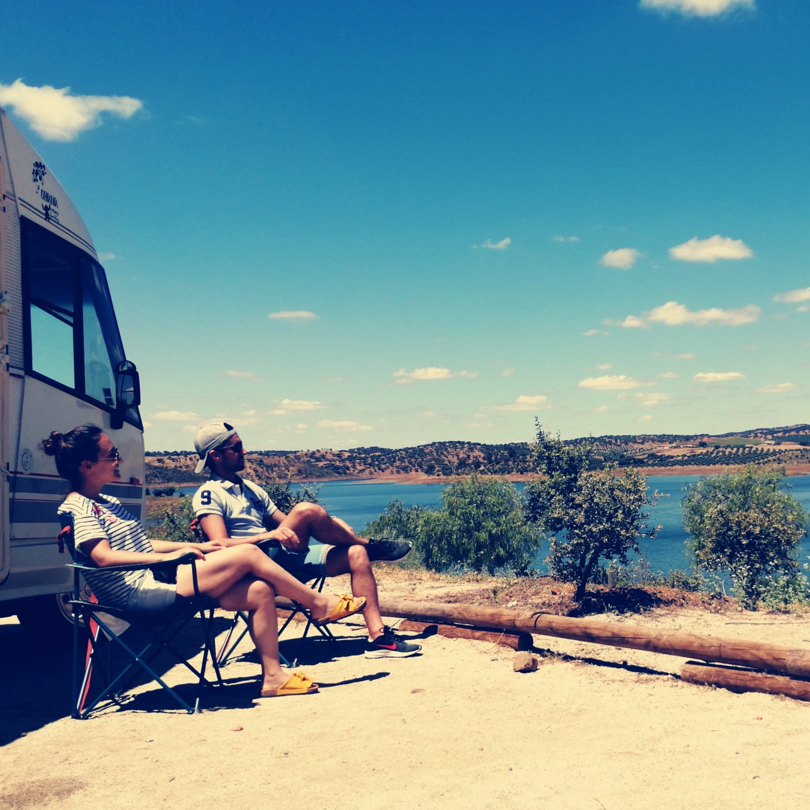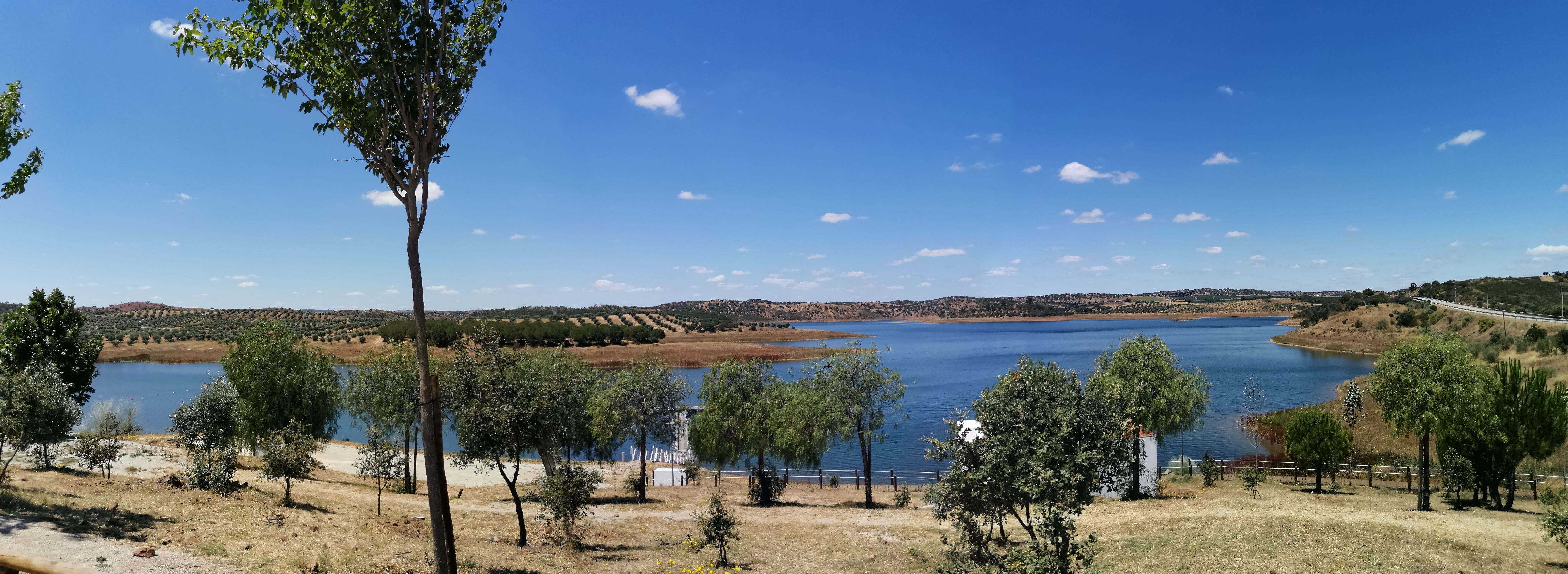 No dia anterior, estacionámos junto a um braço do Alqueva, mais concretamente na praia fluvial da Amieira, mas sem noção da vista incrível que obteríamos assim que corrêssemos as cortinas da autocaravana na manhã seguinte. E assim foi: o acordar foi encantador, ficámos completamente deslumbrados com o local onde estávamos e a paisagem que tínhamos à nossa frente.
