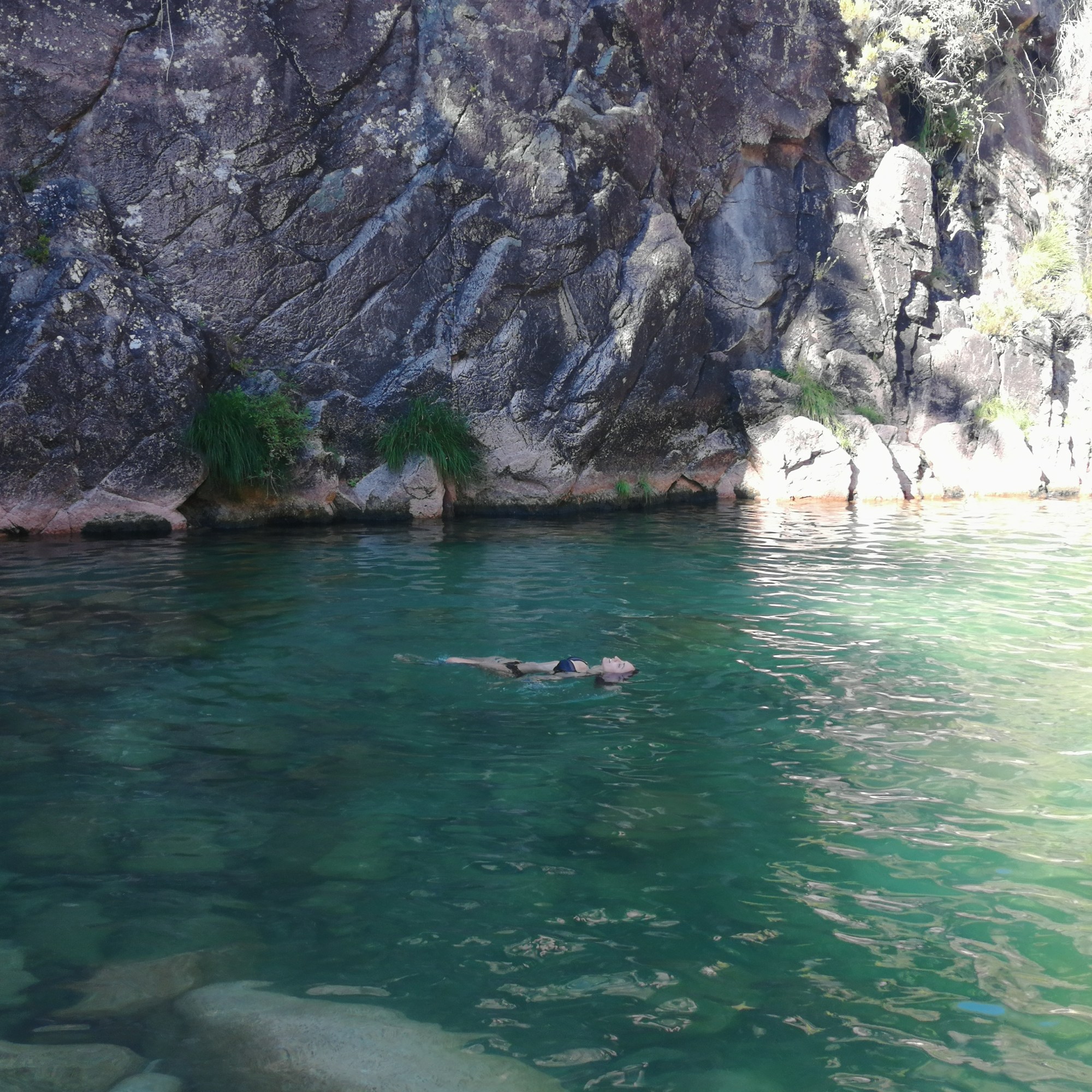 Não perdemos tempo: mergulhámos na água fresca (não gelada como pensámos que estaria) e, entre água e o quentinho das rochas, por ali ficámos cerca de uma hora. Passado esse tempo, era hora de “levantar voo” para outra paragem, outra cascata. Era a vez de conhecermos a cascata do Arado.