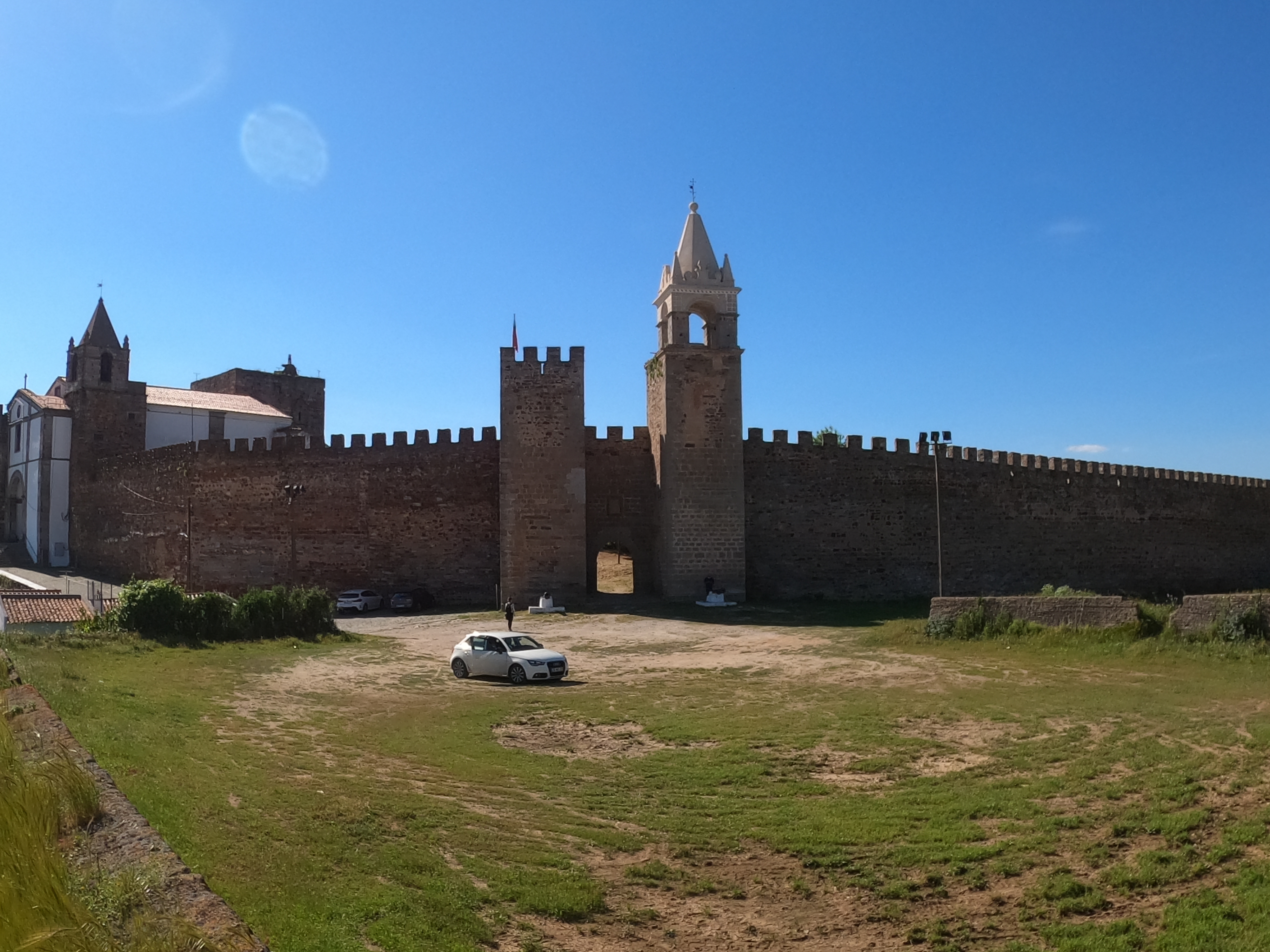 Na manhã seguinte, descobrimos uma vila completamente diferente daquela que nessa noite encontrámos. Rapidamente saltámos para o exterior e deparámo-nos com um sol incrível, que iluminava qualquer recanto, e o palrar dos inúmeros turistas, que já se fazia ouvir em cada esquina. Entrámos triunfantemente pela Porta da Vila, uma das quatro portas existentes (Porta d’Évora, Porta d’Alcoba e a Porta do Buraco são as outras três). Ali está o umbral ladeado pelas imponentes torres circulares, que acoplam a Torre do Relógio, que ainda guarda um sino de 1692.