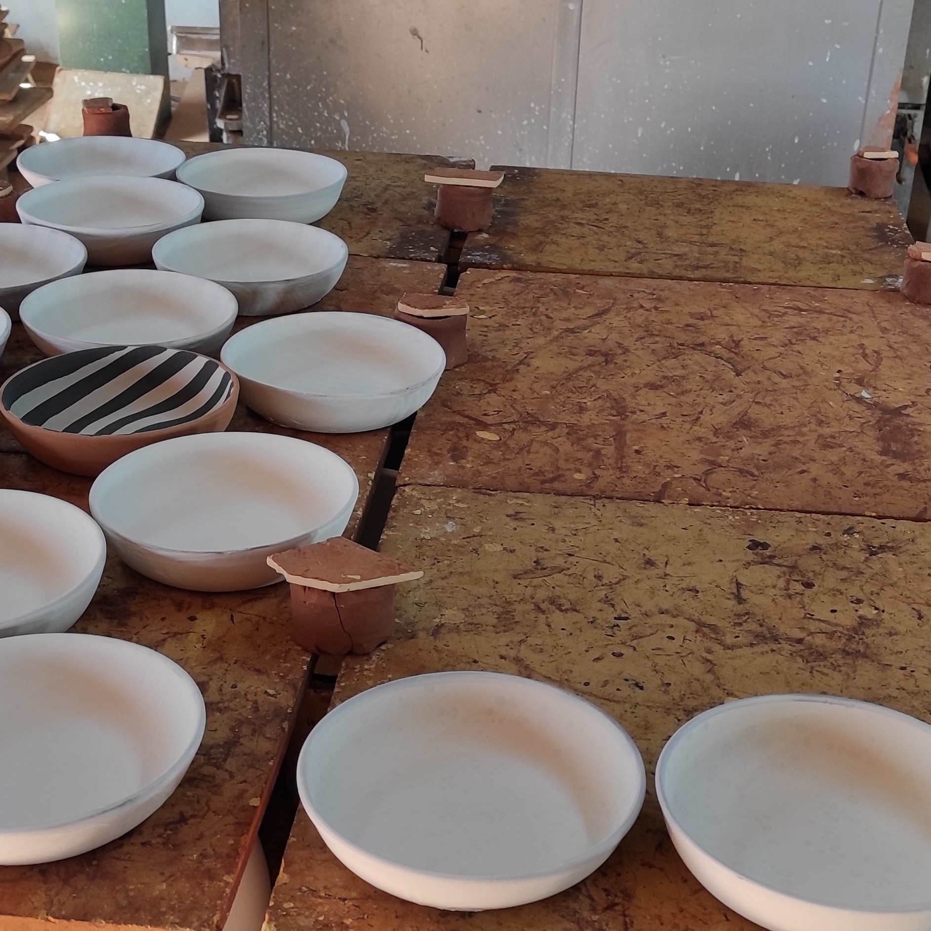 É uma tradição que remonta aos tempos pré-históricos, uma vez que a região de Reguengos de Monsaraz é rica em depósitos de argilas com características específicas. Por entre peças únicas, rodas de oleiros e fornos, descobrimos histórias também elas únicas que nos transportaram para aquela vida simples, humilde mas ao mesmo tempo intensa do interior Alentejano. Não falo apenas no barro mas também na decoração (a pintura cerâmica) da mão que agarra o pincel firmemente para a execução audaz de um saber ancestral, que iríamos ter a honra de poder testemunhar dali a uns minutos, mesmo ainda sem o sabermos. A crise pandémica infelizmente levou ao fecho de muitas olarias e atualmente, de mais de duas dezenas, existem agora talvez pouco mais de uma dúzia em constante funcionamento. Apesar disso, continua a ser por excelência o maior centro oleiro do país e um dos maiores da Península Ibérica.