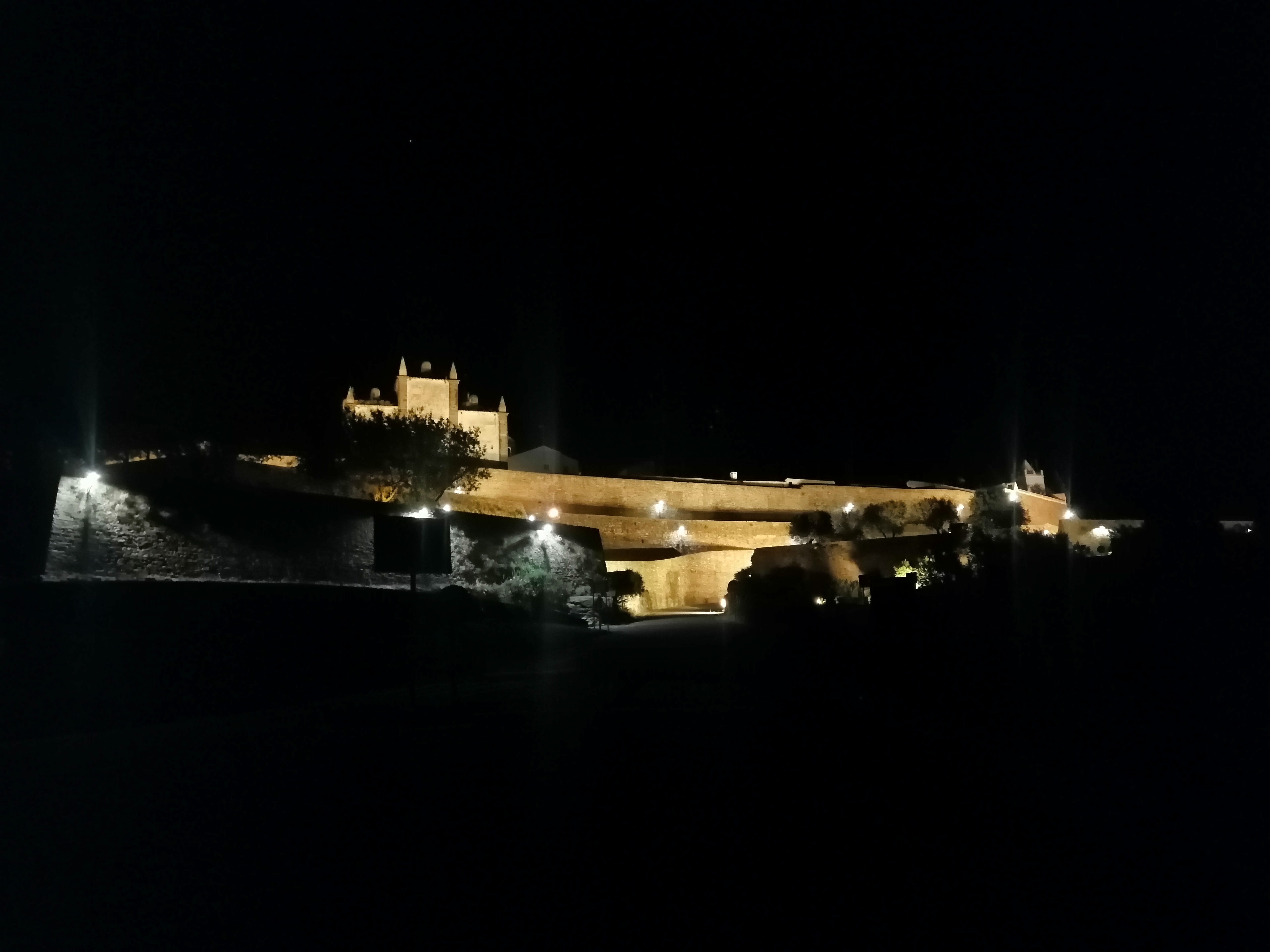 Estava escuro, seriam talvez umas dez da noite de uma sexta-feira, em meados de Abril, quando deixámos de percorrer estradas em linha reta para enveredar por estradas ligeiramente mais estreitas e com pequenas curvas que se sucediam ainda que ligeiramente distanciadas. A verdade é que não víamos grande coisa em redor: continuava escuro, estávamos cansados de um dia de trabalho e demasiado concentrados na estrada. Percebemos apenas que começáramos a contornar uma montanha quando, de repente e após mais uma curva, surge um clarão – tínhamos chegado – era a “porta” de entrada para a vila de Monsaraz! A vila estava incrivelmente iluminada! Parámos ali uns segundos simplesmente a observar: eram as paredes das muralhas do castelo que se destacavam com os focos que tinham sido arquitetonicamente colocados no solo. Não havia absolutamente movimento algum e o clima era agradável. Logo demos conta de que começara o nosso fim de semana pela incrível região de Monsaraz e que tínhamos colocado na bagageira do carro duas bicicletas…