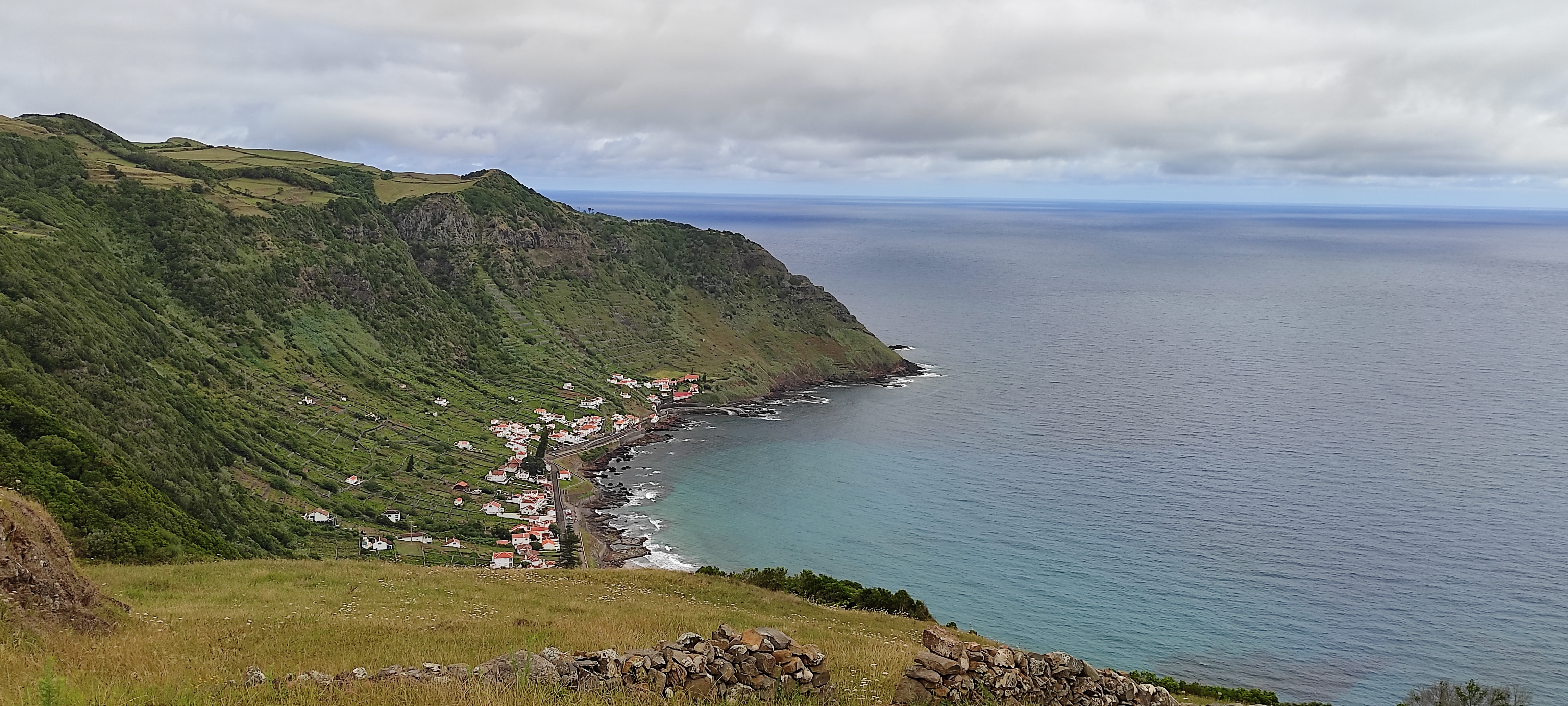 Sei que pode ser mais um cliché da minha parte, mas arrisco uma vez mais a dizer que esta é talvez uma das baías mais bonitas do mundo. É a conjugação perfeita da encosta ingreme, belissimamente decorada pelos currais de vinha construídos pedra sobre pedra de cor preta e por onde o verde da vinha serpenteia pela enseada. O casario de cor branca sarapinta o quadro final.