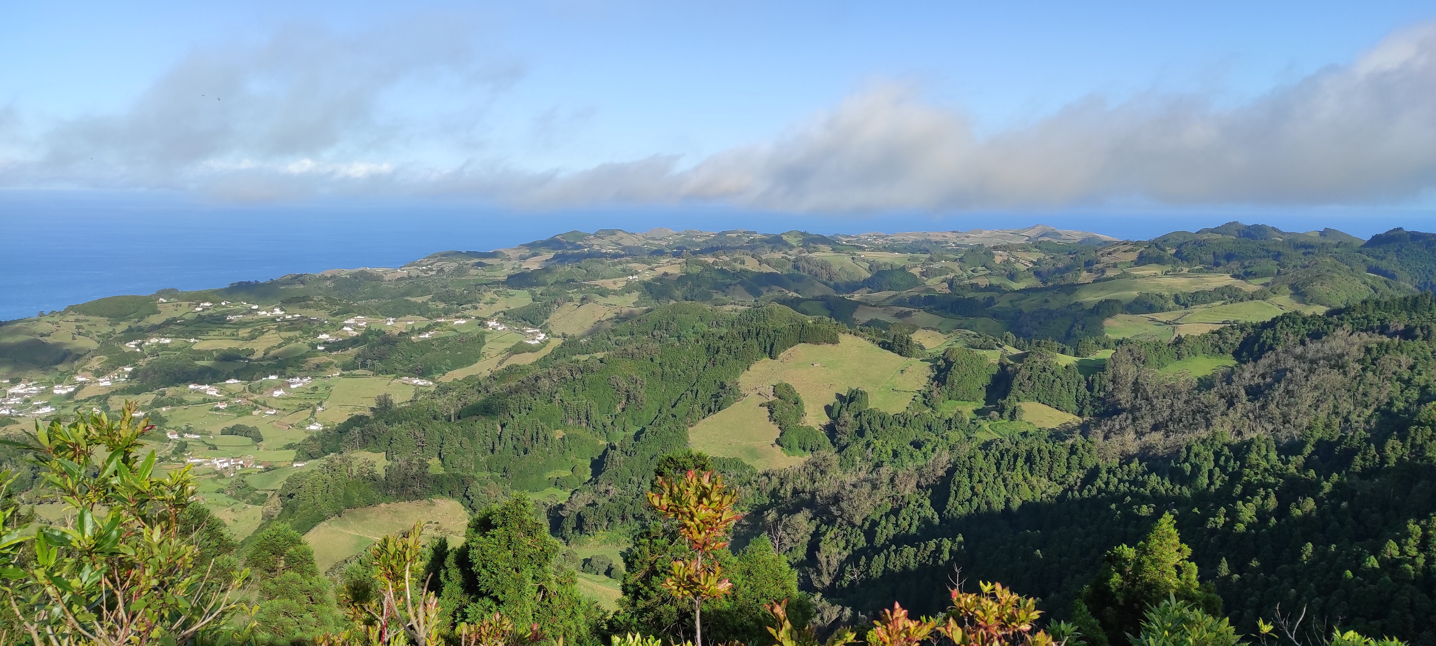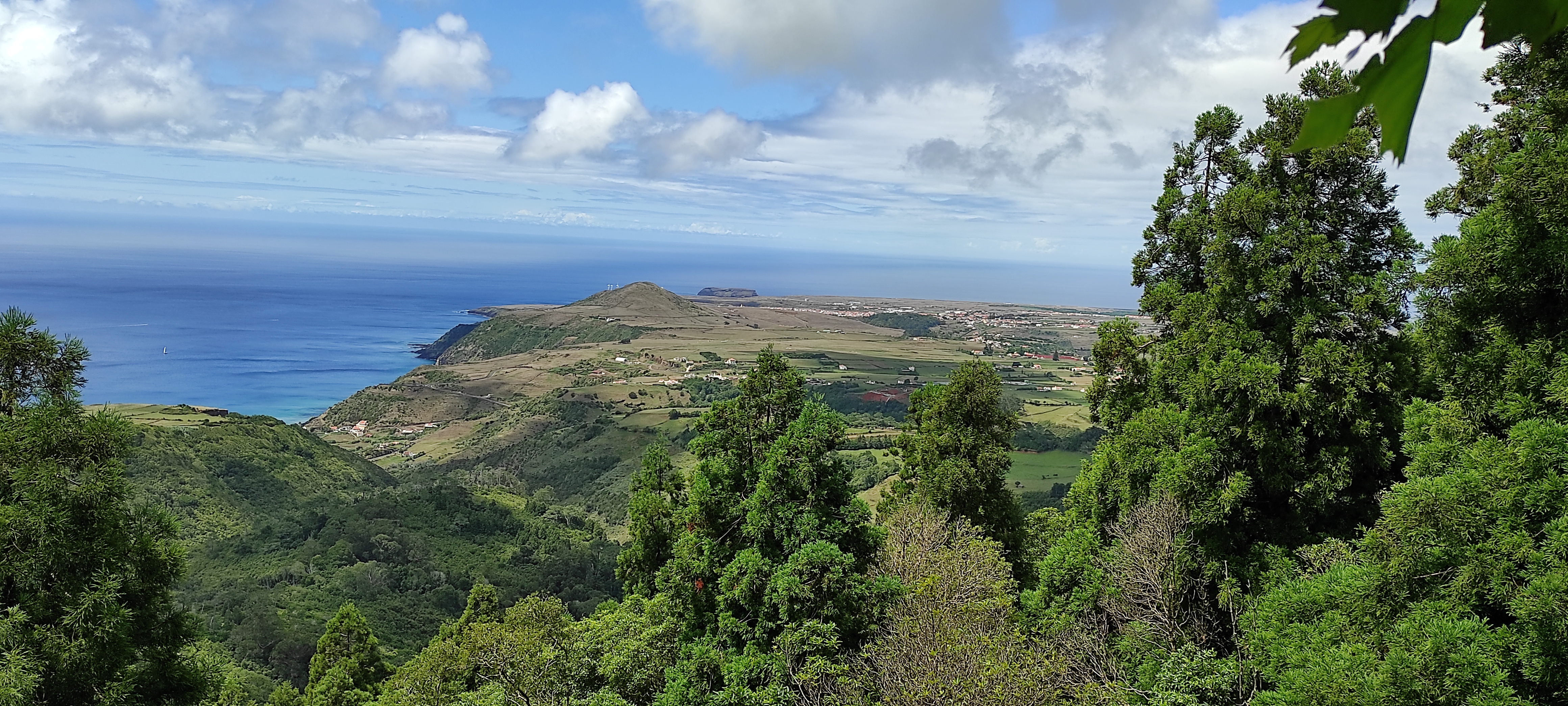 A primeira vez que subimos a esta zona estava vento, nevoeiro e chuviscava e, por isso, acabámos por não subir ao miradouro pois não íamos conseguir ver nada. No dia seguinte, ao final da tarde, olhámos para a montanha e vimos que estava completamente desimpedida de nuvens. Metemo-nos no carro e acorremos ao local. Quando chegámos, o miradouro estava deserto. Subimos a pequena escadaria que dá acesso ao miradouro e ficámos absolutamente deslumbrados com a vista panorâmica sobre a ilha. A vista é quase de trezentos e sessenta graus sobre toda a ilha e permite observar as diferentes formas de relevo de Santa Maria: a metade ocidental (mais baixa, amarelada e plana) e a metade oriental (montanhosa, esverdeada e arborizada). Este é mais um ponto de visita imprescendível na ilha de Santa Maria.