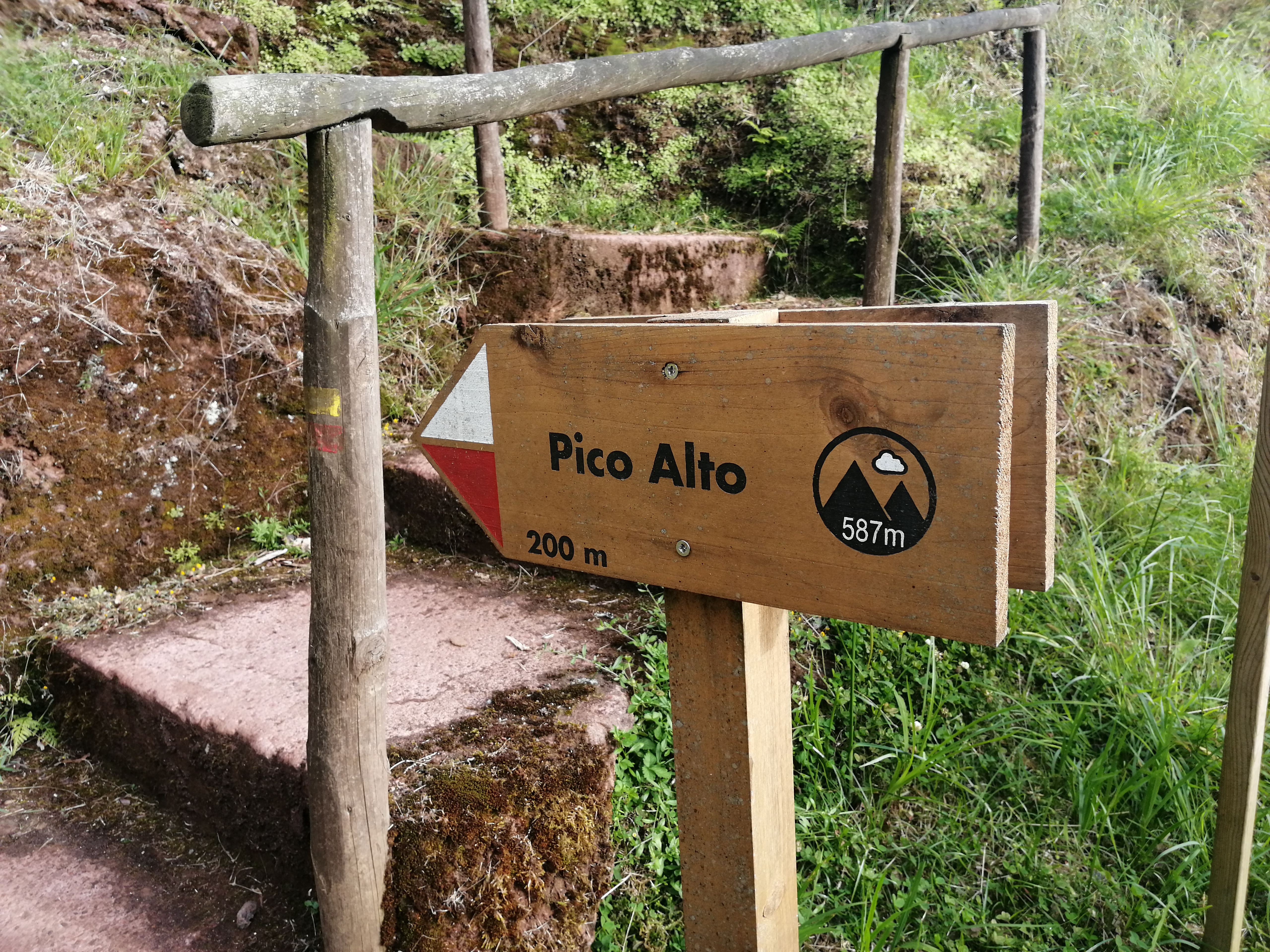Ainda na estrada regional EN 1-2A, atenta a uma placa que indica o corte para o Pico Alto. Este local é o ponto mais alto de Santa Maria, situado a cerca de quinhentos e oitenta e sete metros de altitude, onde se localiza o emblemático Miradouro do Pico Alto. O ponto de referência são as antenas que, para mim, são o ponto menos positivo deste local.