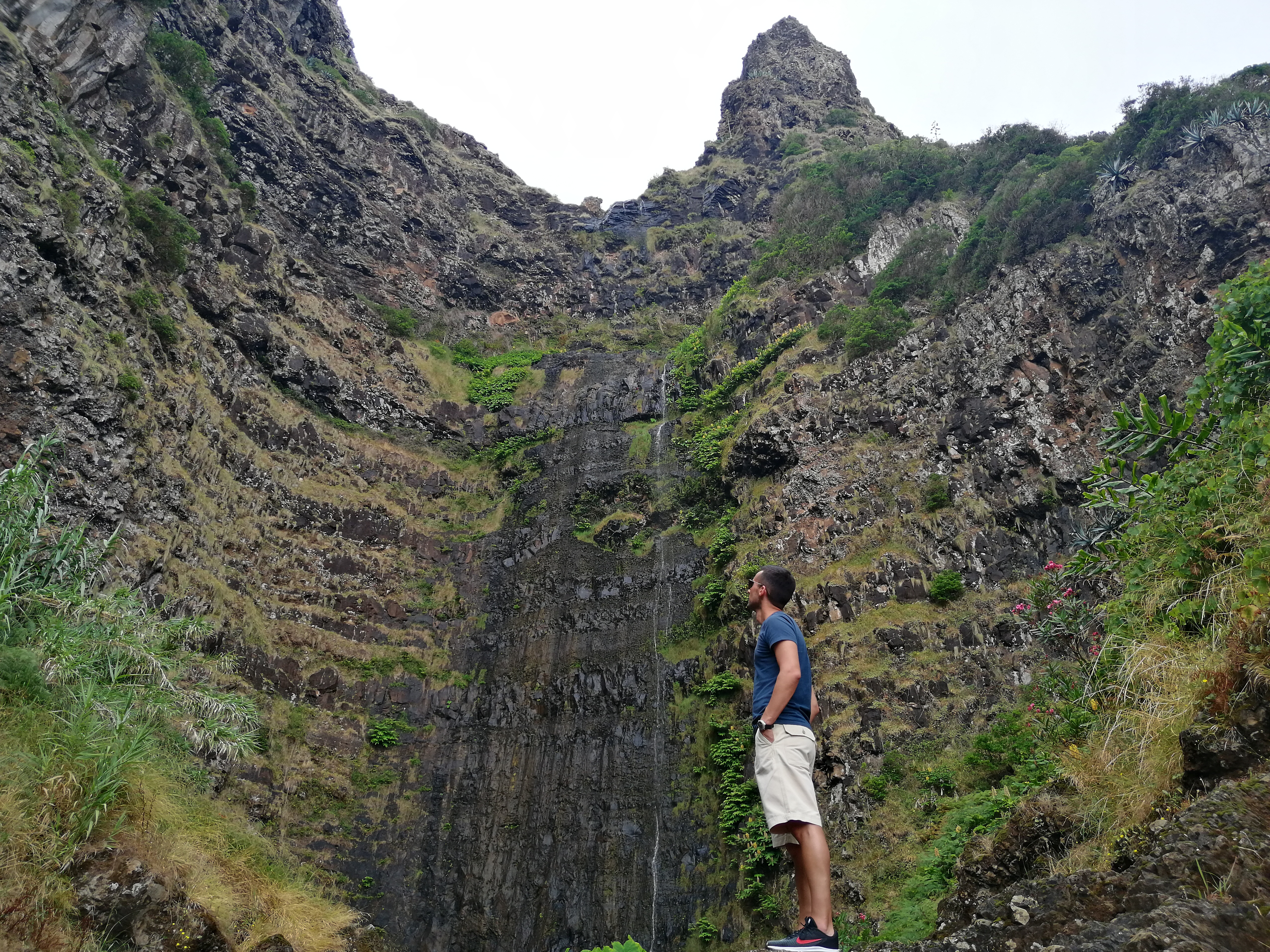 Consegues imaginar o nascer do sol aqui? Pois é, é deste lado que nasce o sol, atrás daquela “cortina de água”, e é daqui que podemos ver as paredes da cratera a serem iluminadas pela luz natural do amanhecer. E a estrada de acesso? Sempre a descer até à praia, contornando os currais e as casas. Passamos por vários miradouros que permitem várias panorâmicas da baía. Não sei precisar o número de vezes que fomos parando até chegar à praia. É um percurso tão bonito que qualquer palavra que aqui escreva nunca conseguirá descrever corretamente o que se vê e se sente!