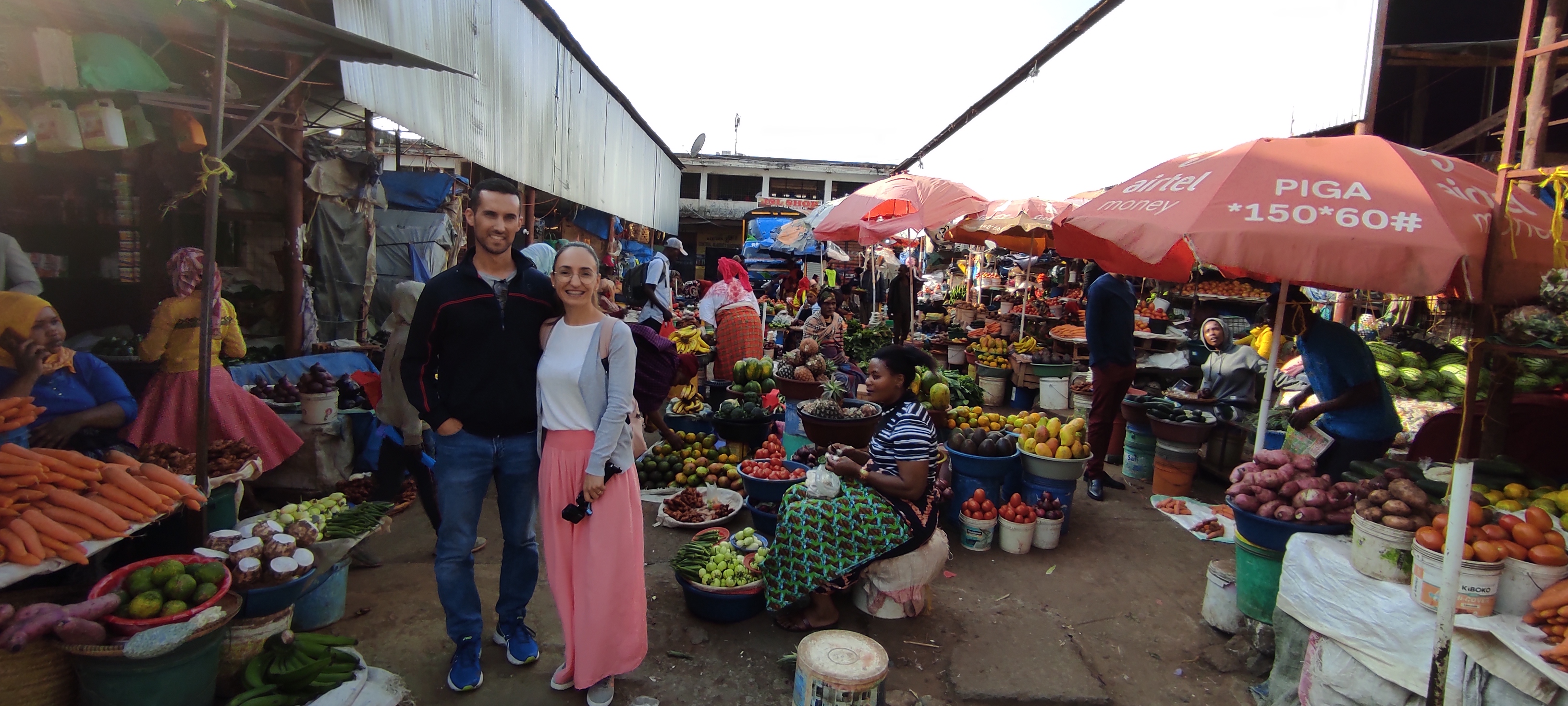 A paragem seguinte foi em 2 mercados locais: primeiro no Arusha Central Market e depois no Masai Central Market. O primeiro é um mercado dedicado à gastronomia local, onde podemos encontrar todos os produtos produzidos e consumidos pela população: legumes, frutas, carnes, peixes, especiarias, cereais, entre tantos, tantos outros. Foi aqui que contactámos pela primeira vez com a comunidade local. Conhecemos os seus processos de cultivo e o quão duro podem ser. A dureza pode ainda ser maior quando se trata de os ter que transportar e vender. Habitualmente são as mulheres que, com os produtos à cabeça e em cestas, bacias plásticas ou envoltos em tecidos de muitas cores, fazem quilómetros a pé ou, na melhor das hipóteses, em vans alugadas. Muitas vezes não os conseguem vender e têm que regressar com tudo o que levaram e sem dinheiro.