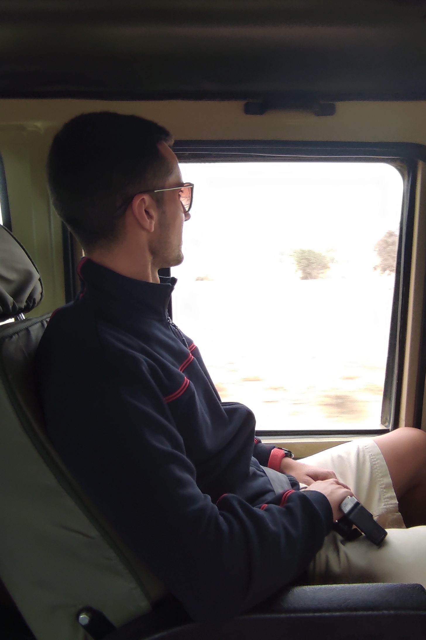 Faltavam ainda 10 minutos para as 8 horas e já estávamos prontos e a olhar ansiosamente para a porta de entrada do hotel. Ei-lo: Saimoni, é o seu nome! Um homem alto, moreno e de sorriso estampado no rosto. Um “bom dia” foi de imediato emitido e, logo de seguida, a pergunta que nos fez estremecer: “prontos para a experiência mais marcante das vossas vidas?” Wow!? Seguiu-se uns segundos de silêncio e um cruzamento de olhares arregalados… Depois de nos ter deixado recuperar do impacto daquelas primeiras palavras, questionou-nos sobre qual o animal que gostávamos de poder ver e, de seguida, lançou as primeiras recomendações para a viagem que estávamos prestes a iniciar. Concluiu com uma frase que guardo até hoje na minha memória, que hoje faz mais sentido do que naquele dia e que tem de ficar aqui registada: “A natureza tem o poder de nos transformar. Mas ela também é imprevisível e inesperada. Podemos ou não a testemunhar…“. Seguiu-se um silêncio ensurdecedor. Pouco depois, mais um sorriso e os olhos cor de azeitona preta continuavam cravados em nós, sem se terem desviado um único segundo. Depois disso, nada mais foi dito até entrarmos no jeep (deixara-nos a pensar sobre o assunto). Com as suas enormes mãos, indicou-nos o caminho até aos bancos traseiros do jeep, que tinha as portas traseiras abertas. Sim, um jeep, daquele género que sempre vimos na TV, amarelo, alto e de pneus largos! Wow (novamente)… estávamos a minutos de iniciar a concretização de mais um sonho, um sonho que nunca pensámos poder vir a concretizar. Os sonhos que voavam apenas pelas imagens da TV e pelo timbre da voz que as compunha!