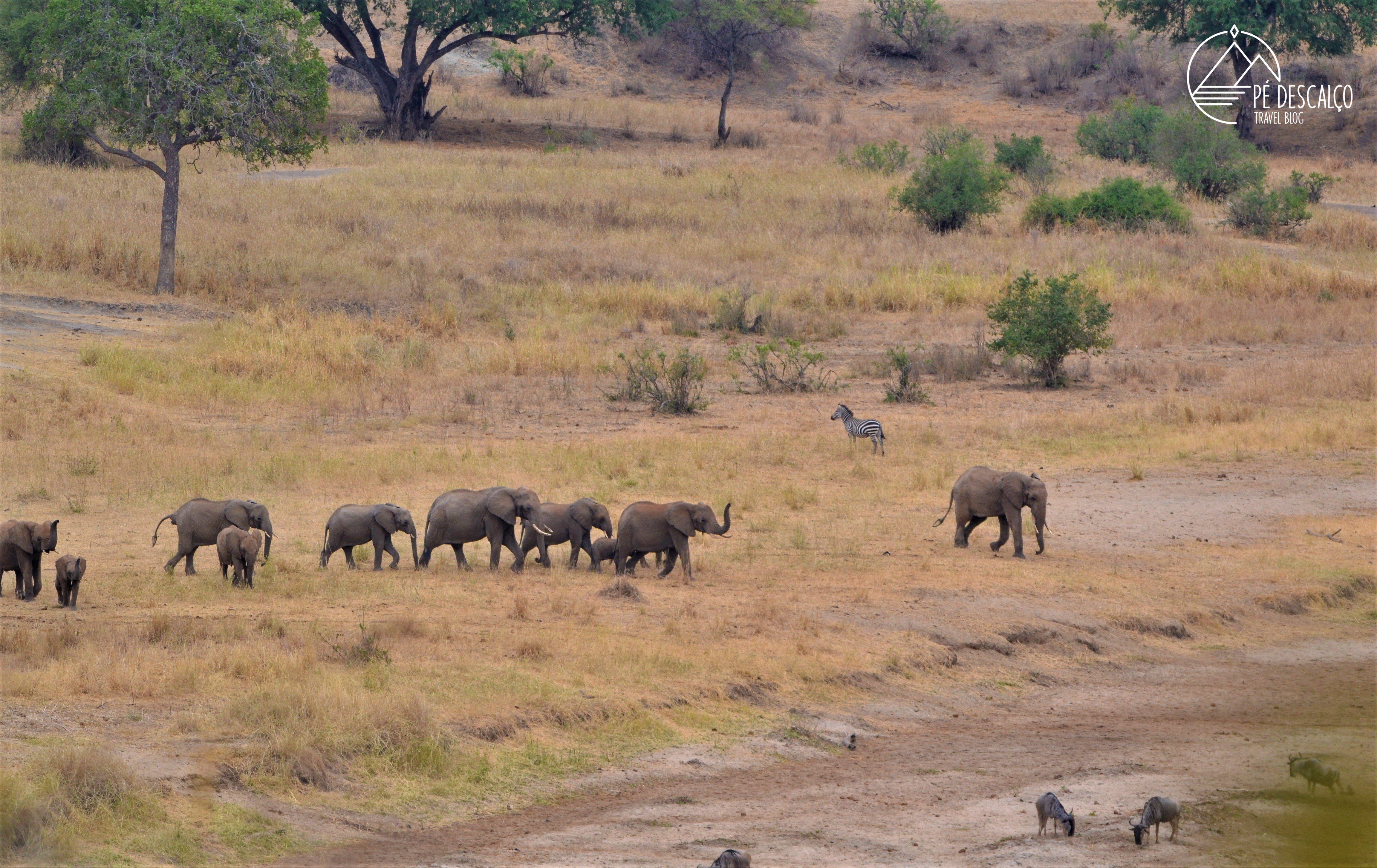 Parámos numa mesa bem junto à arriba. O Saimoni tinha escolhido tão bem: que vista incrível sobre a savana! Lá em baixo passava um rio já quase seco que, apesar do estreito fio de água, fazia a delícia de muitos animais que por ali circulavam: famílias de elefantes, zebras, gnus e javalis. Almoçámos e por ali ficámos a contemplar umas das paisagens mais incríveis de Tarangire.