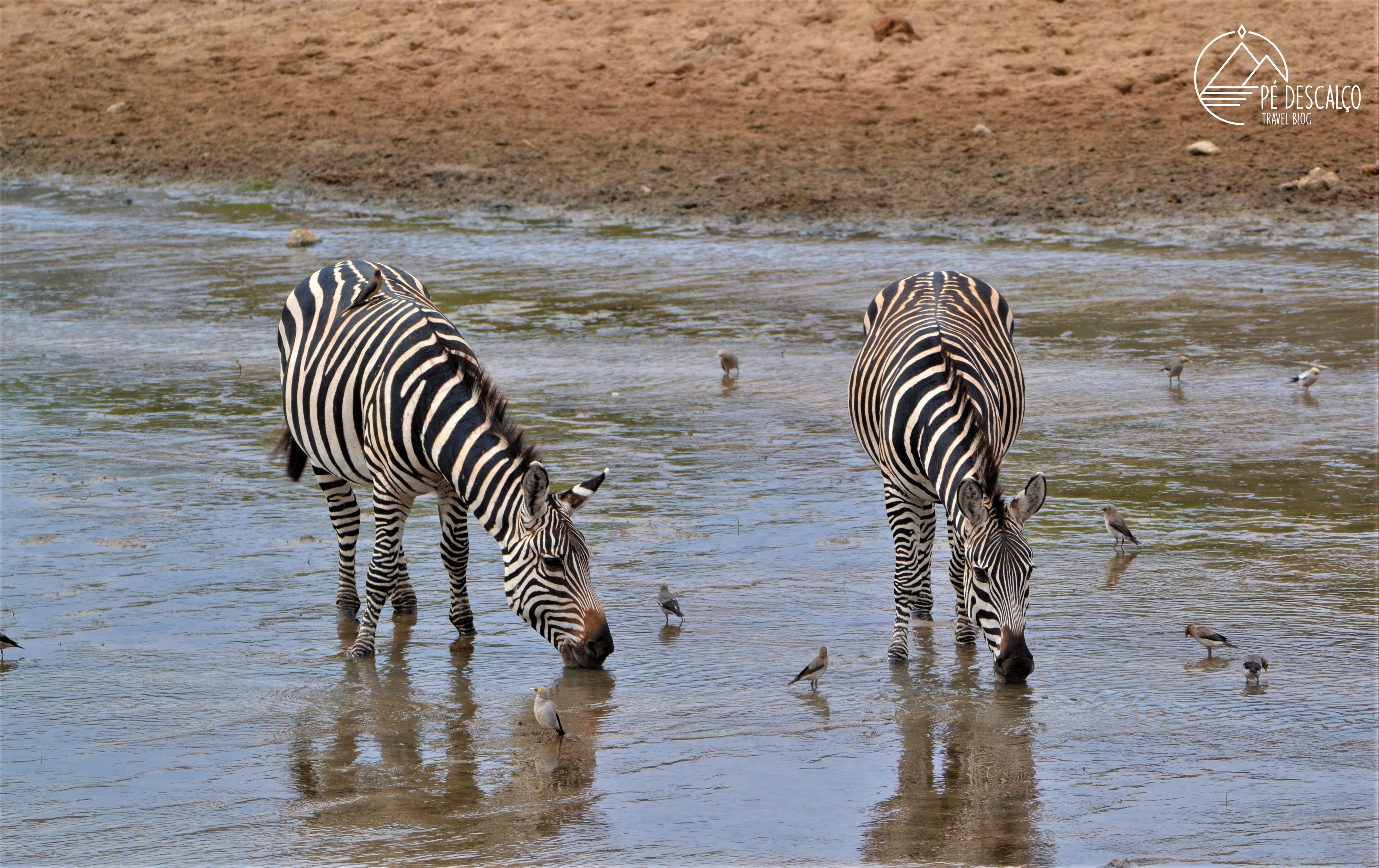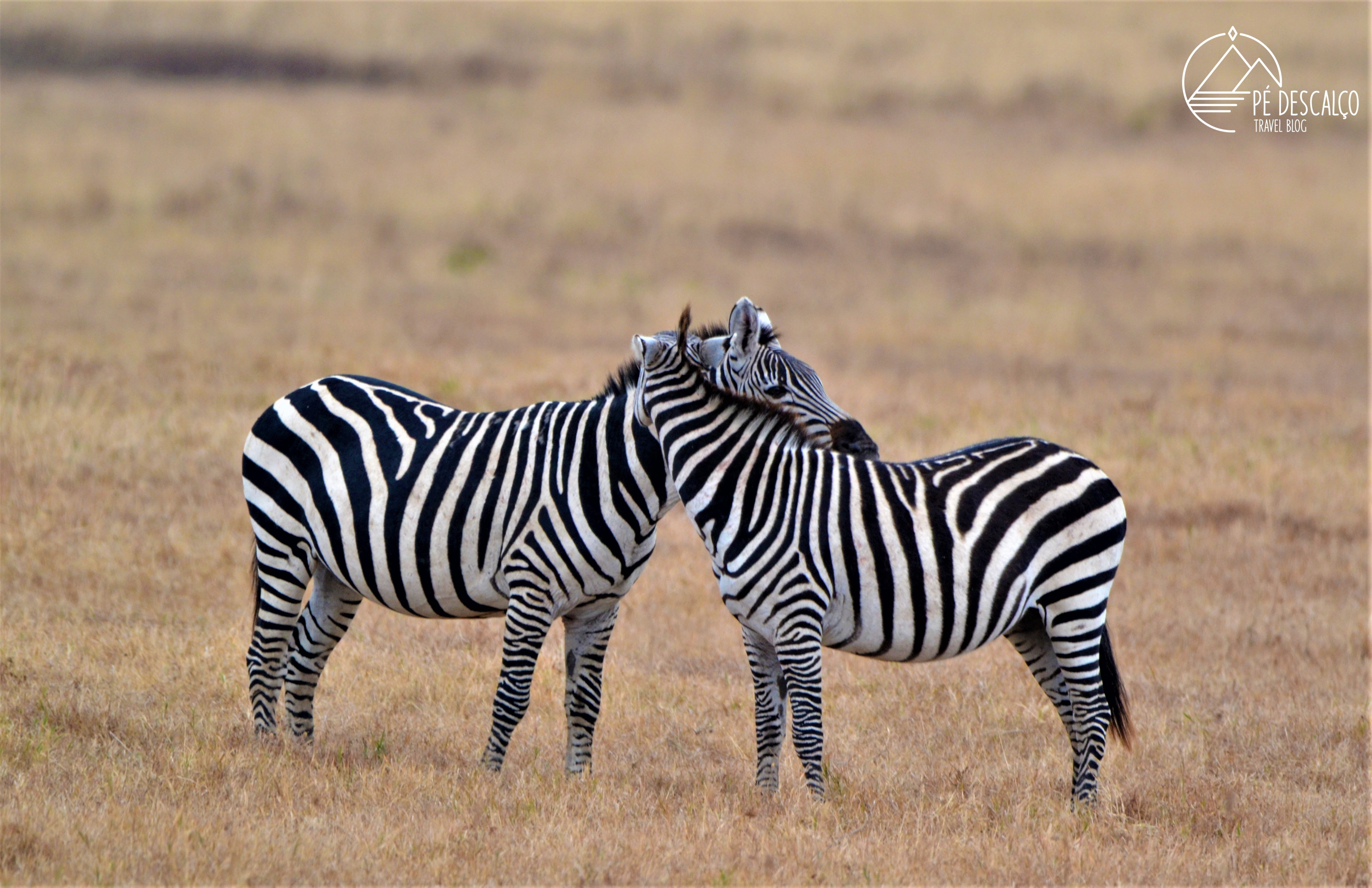 O dia estava a aproximar-se do fim, mas continuávamos a observar mais animais e os seus comportamentos no seu habitat natural. Encontrámos uma família de zebras posicionadas de forma estranha e que nunca tínhamos visto: estavam coladas umas às outras e com os pescoços entrelaçados. Questionámos o Saimoni. Ele parou o jeep, fez marcha atrás, até termos um melhor vislumbre sobre as zebras naquela posição. Desligou novamente o jeep, voltou-se na nossa direção e calmamente explicou-nos: “Estão em posição de defesa e de observação. É assim que garantem a segurança de todos os membros da família pois conseguem ter um alcance de 360º.” Seria a primeira de muitas vezes que viríamos os animais naquela posição. Seguimos viagem e os animais permaneram exatamente como os tínhamos encontrado.