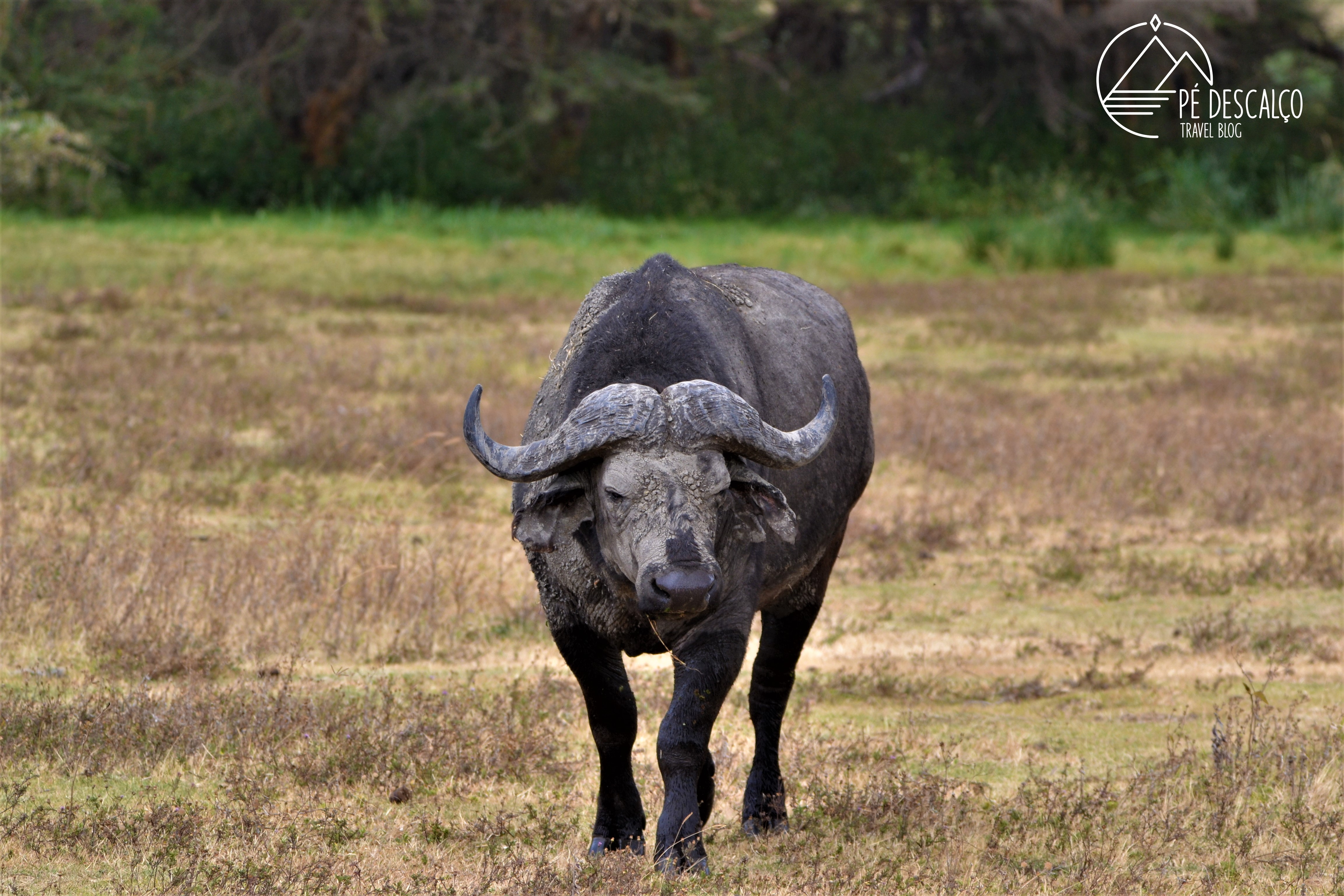 O Saimoni já nos esperava, com as portas e o tejadilho do jeep novamente abertos. Instalámo-nos confortavelmente e jeep iniciou marcha. No entanto, não demorou muito tempo para estarmos de pé. Não muito longe da receção do alojamento, começámos a vislumbrar búfalos, mais babuínos (talvez a família que tínhamos visto no dia anterior), girafas e hipopótamos que lutavam num pequeno lago.