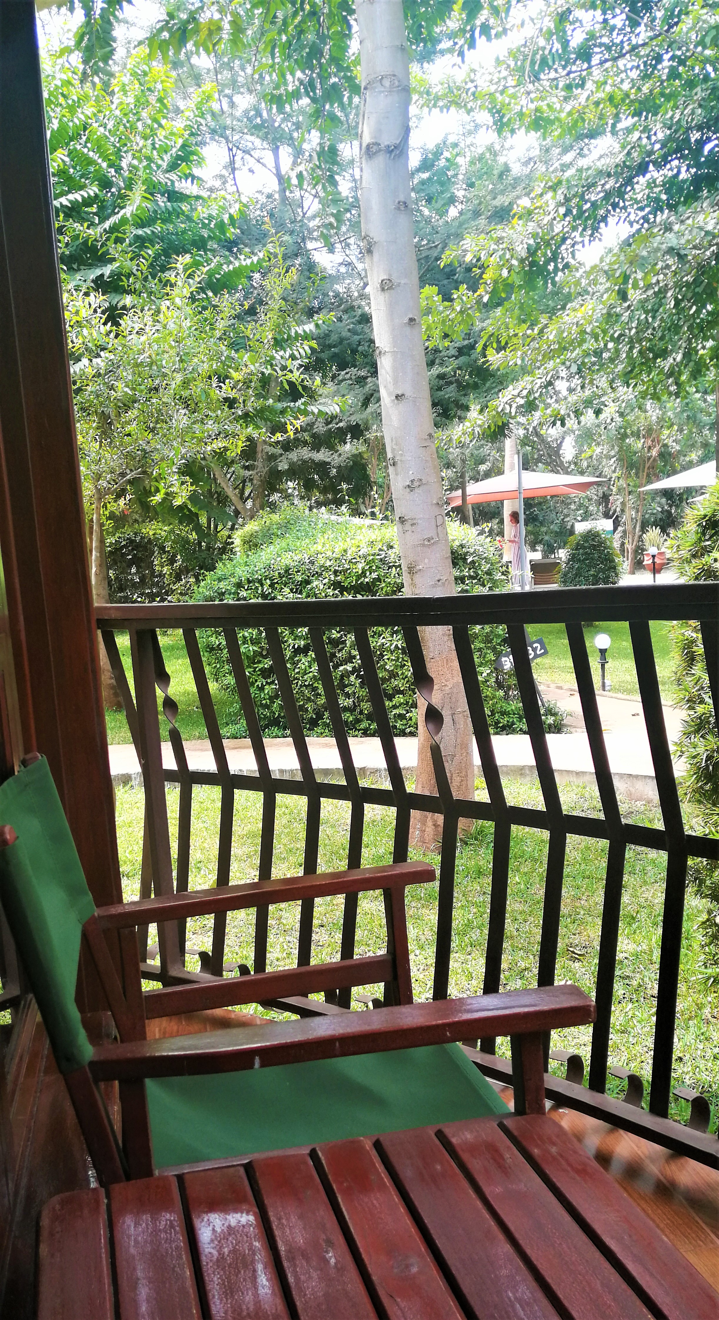 O alojamento está tão bem integrado no ambiente envolvente que nem demos pela chegada. Assim que o Saimoni parou o jeep, um grupo de homens aproximou-se e, de sorrisos rasgados, vieram dar-nos as “boas-vindas”. Eram os funcionários do alojamento! De imediato agarraram-se às nossas bagagens que o Saimoni retirara do jeep. Amavelmente, transportaram-nas para o interior de uma tenda, a primeira que estava de frente a uma árvore decorada com apetrechos locais e que servia de rotunda. Era a receção.