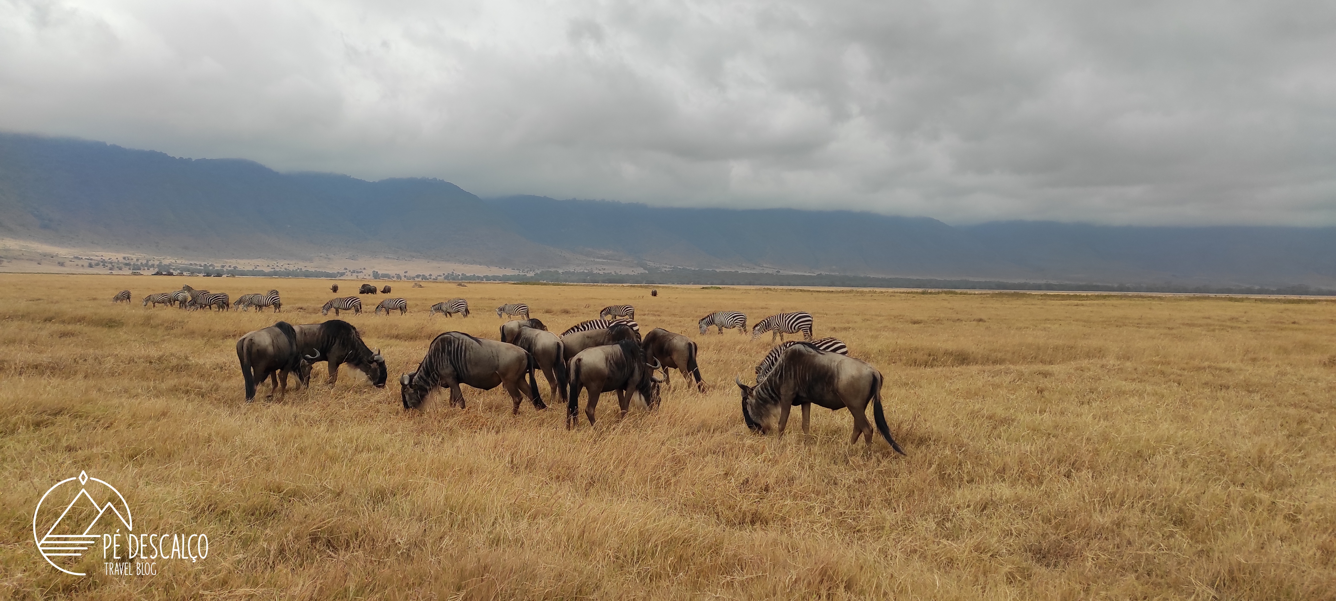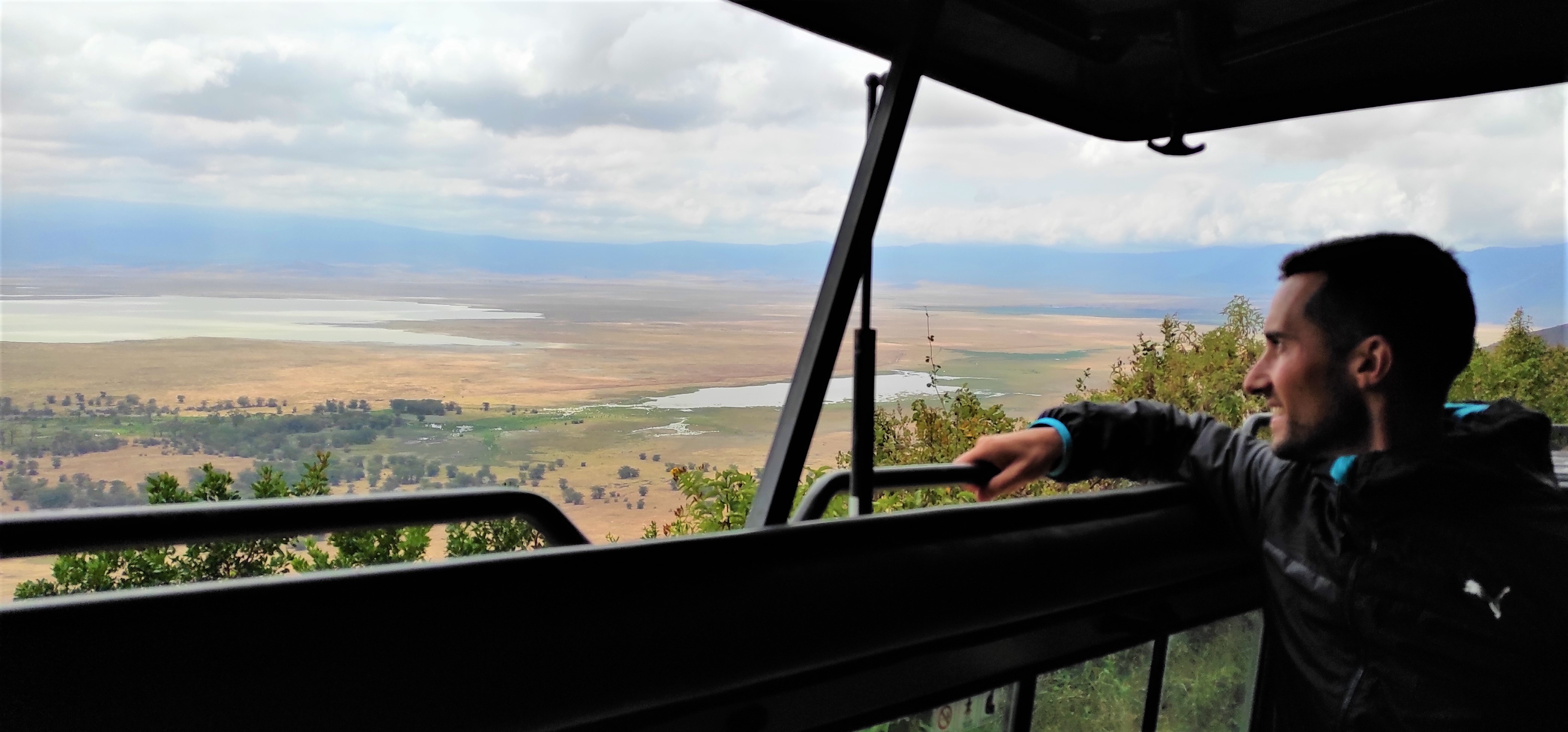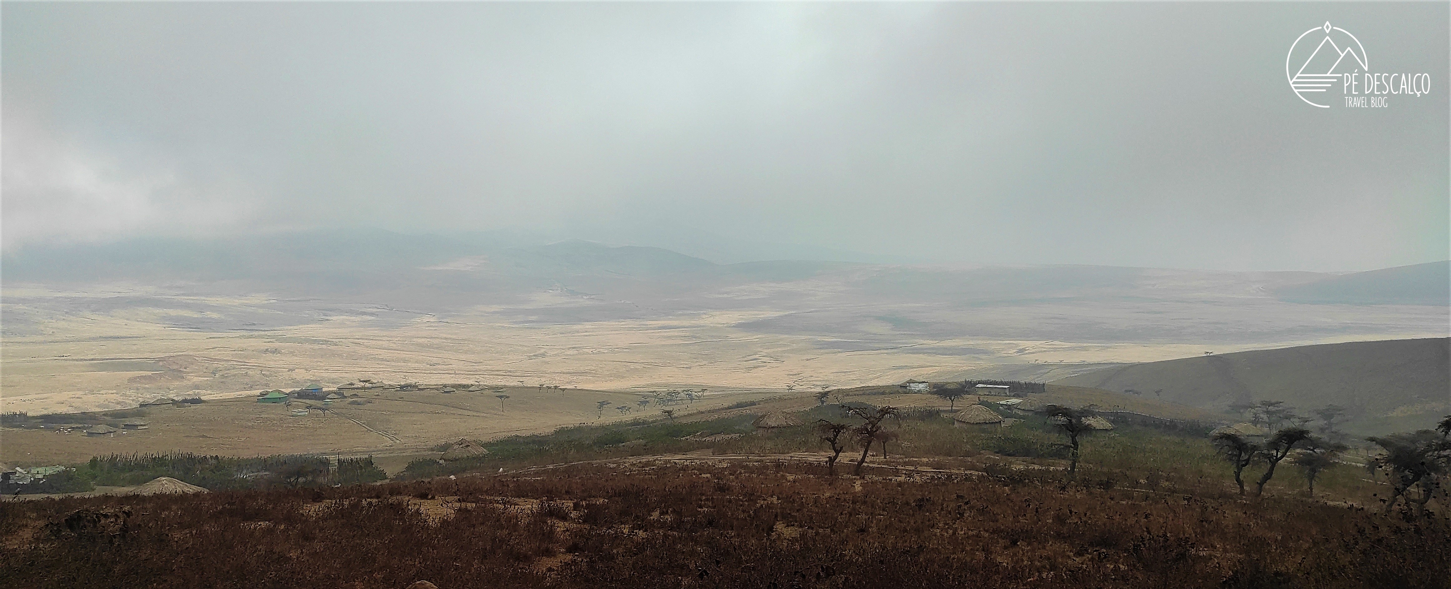 Para chegar ao Serengeti temos de passar por Ngorongoro. Mais uma vez, tivemos que fazer o check in à entrada do Parque de Ngorongoro, contornar a cratera de Ngorongoro para poder seguir em direção ao Serengeti. Contornámos a encosta norte de Ngorongoro, que é uma típica paisagem de montanha: húmida e quase sempre verdejante. Existem muitas curvas e a estrada é em terra batida e bastante irregular.