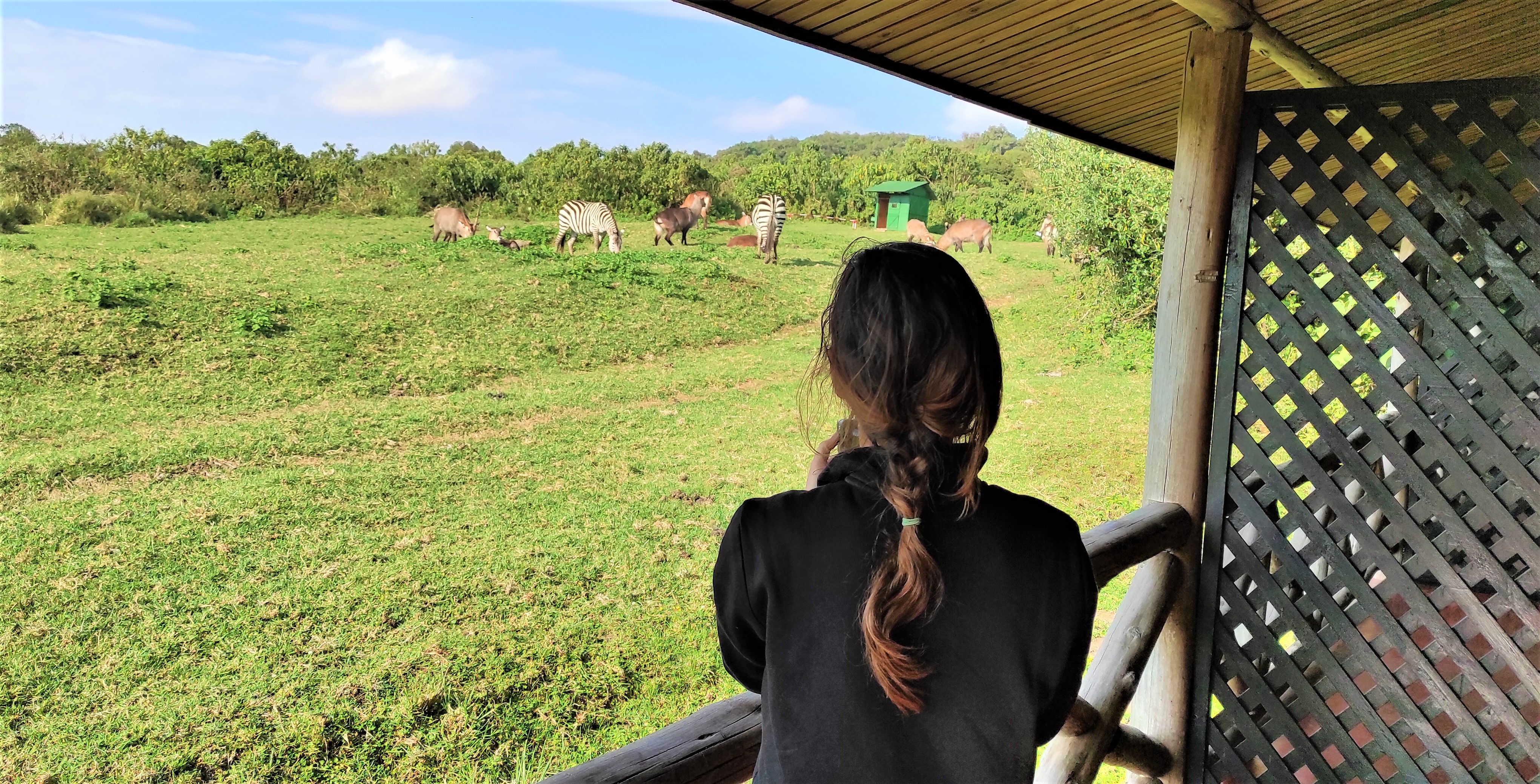 Antes do almoço e enquanto o Saimoni preparou a documentação para darmos entrada no parque, eu e o Magno súbimos a um miradouro. Não encontrámos muitas pessoas e confesso que estava um pouco cética e desconfiada: o view point está em plena savana, há vigilância, mas não há qualquer vedação. A vista do topo era super agradável, mas mais do que isso, era capaz de puxar pela nossa imaginação – a não muitos metros/quilómetros dali estaria com toda a certeza um qualquer animal selvagem.