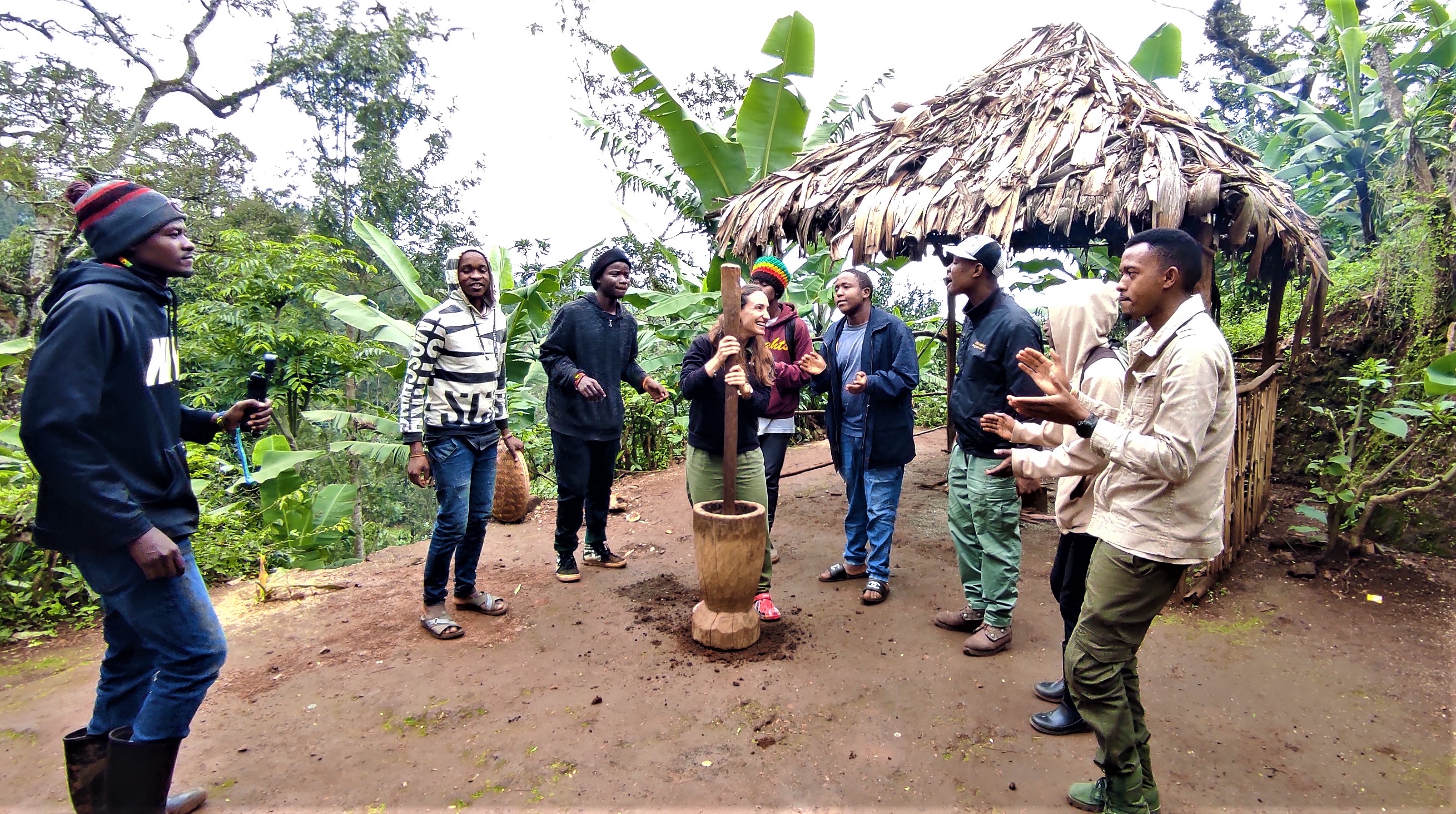 Estavamos quase a finalizar a nossa visita à plantação, quando nos convidaram a sentar. Ali perto andava o grupo de crianças que nos recebeu e que, pouco depois, estavam junto de nós novamente. Nesse mesmo instante, ouvimos um homem, de estatura baixa e de pés largos, a cantar enquanto começava a subir uma árvore com um pequeno cordel envolto nos pés descalços. As canções eram-nos familiares da visita à região do Kilimanjaro. As crianças também as sabiam e cantavam com uma alegria contagiante.