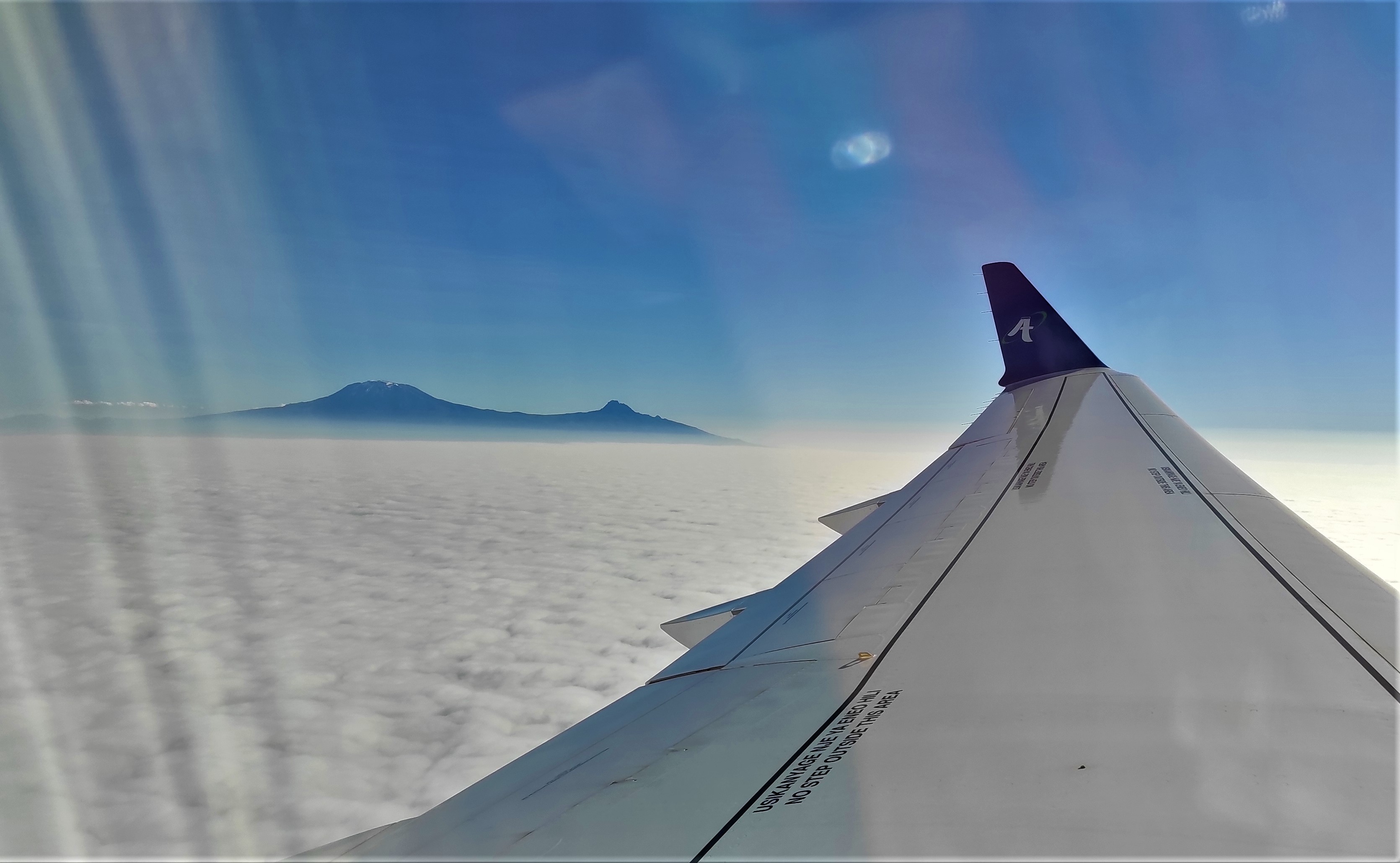 Com quase uma hora de atraso, levantámos voo em direção a Zanzibar. Lá em cima, eis a oportunidade de poder vislumbrar o topo da montanha de Kilimanjaro que, a partir do solo, as nuvens nos tinham impedido de ver. Uma imagem estrondosa, que guardaremos eternamente na nossa memória.
