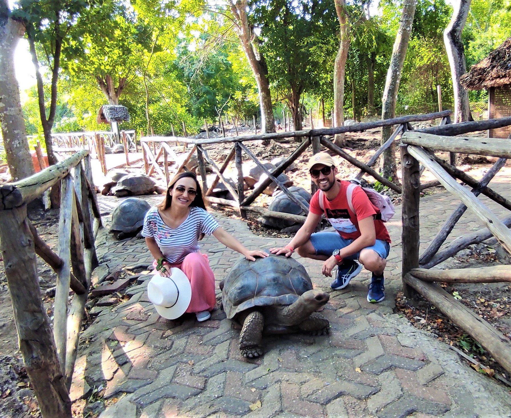 Mas a verdadeira razão que nos levou ali foi conhecer o pequeno santuário ali existente. Aquele local acolhe tartarugas com dimensões verdadeiramente impressionantes. Estima-se que um destes animais gigantes tenha cerca de 197 anos e há quatro com mais de 150 anos. Percorremos o pequeno espaço, onde ainda tivemos oportunidade de poder alimentar alguns destes enormes animais. Foi emocionante contactar tão de perto com estes seres que, se os compreendêssemos, de certo teriam imensas histórias para nos contar.