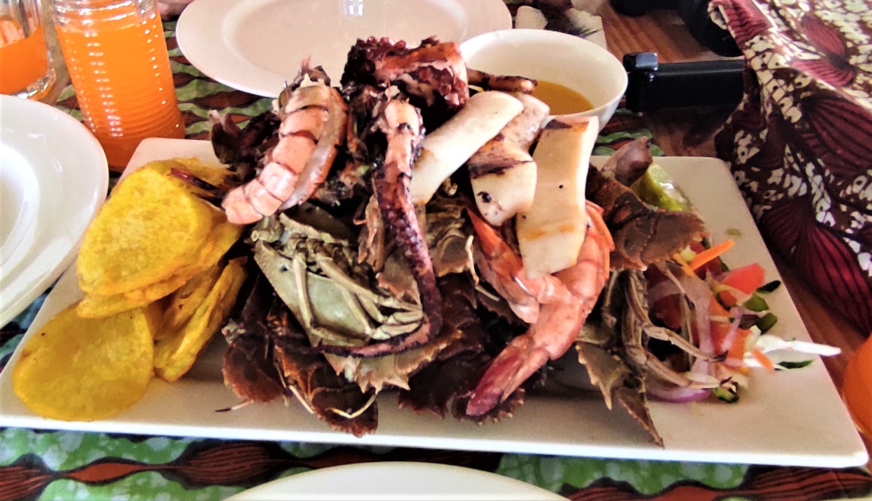 Comemos peixe e marisco pescado naquele mar por pescadores locais e, cerca de duas horas depois de nos sentarmos à mesa, levantámo-nos e dirigimo-nos para a incrível varanda existente na traseira do restaurante. Esta varanda está virada para o infindável Oceano Índico e a paisagem é maravilhosa. Ali existem sofás ondes os clientes podem simplesmente beber uma bebida sem ter que fazer propriamente uma refeição (pelo menos assim era quando lá fomos). Ficámos ali mais um bocadinho a desfrutar daquele ambiente extraordinário até decidirmos seguir viagem.