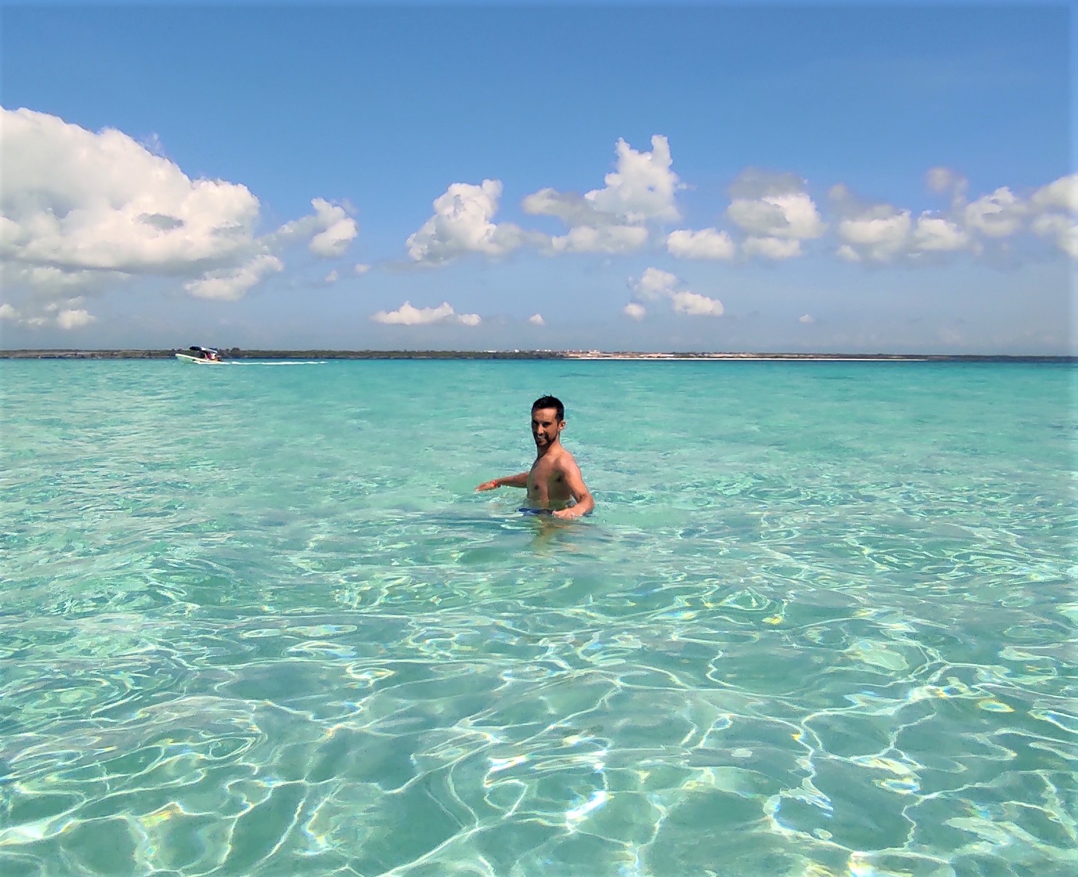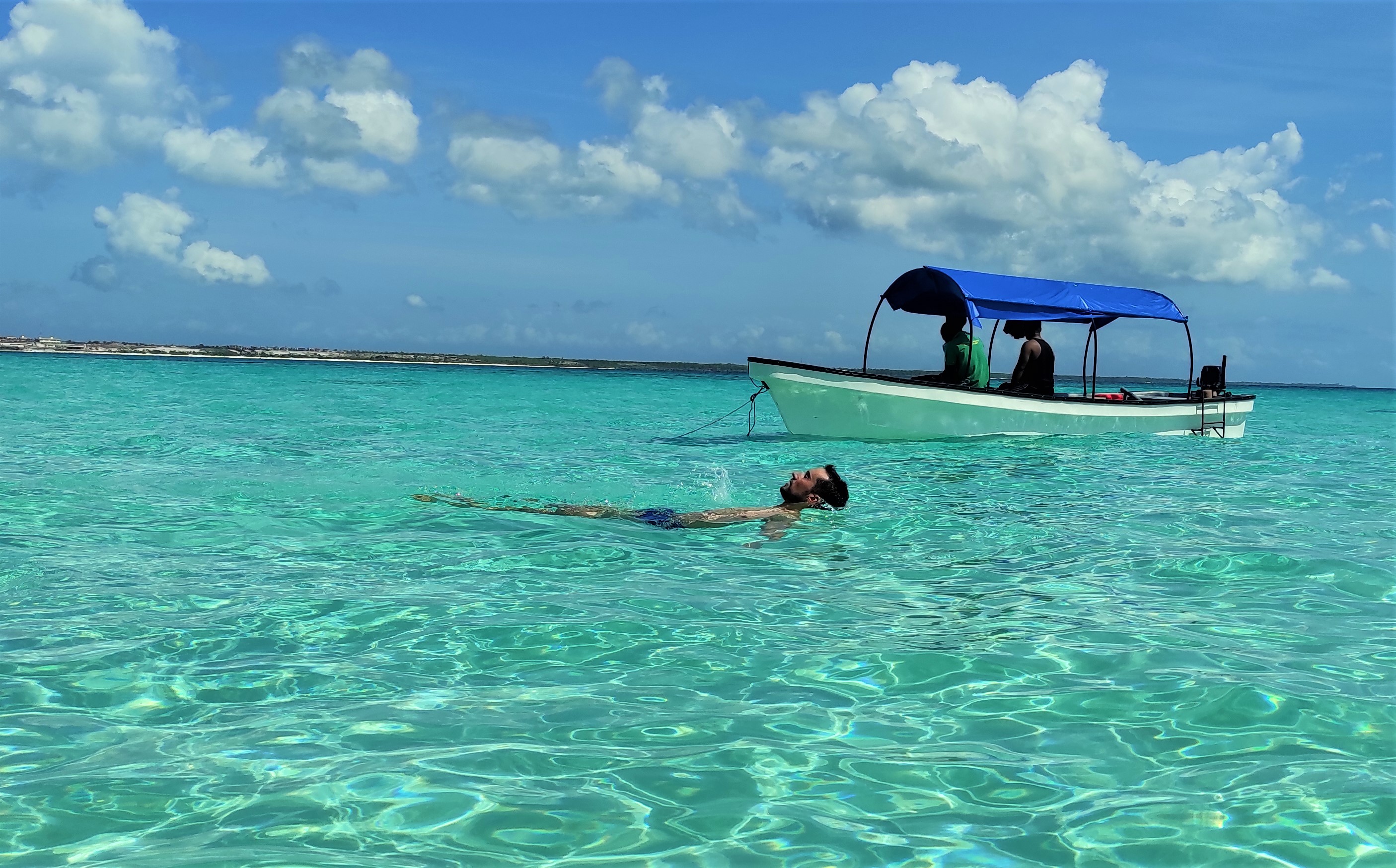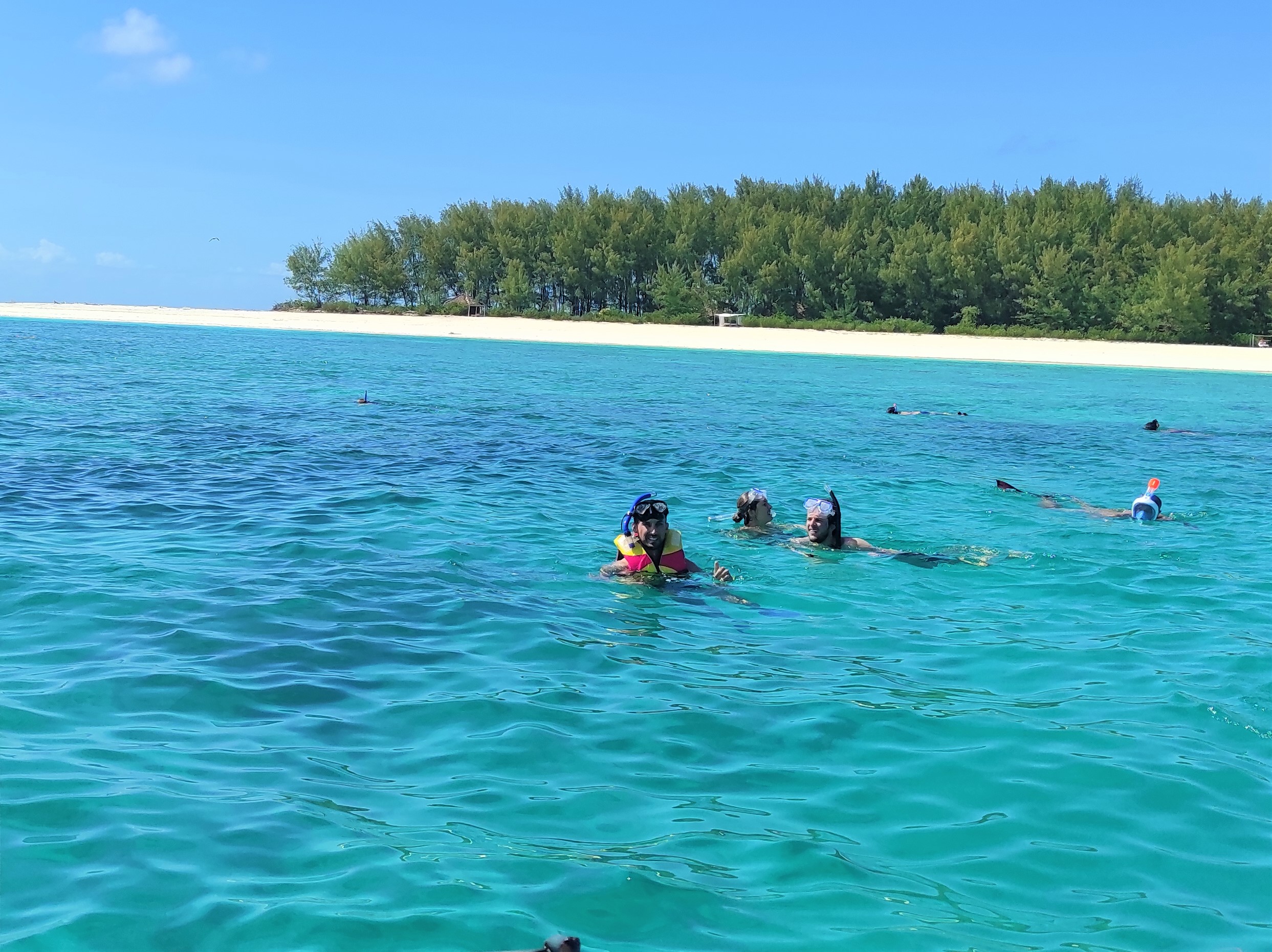 Andámos uns 20 minutos até que o barco começou a abrandar a velocidade. Ao longe conseguíamos avistar uma ilha que seria a ilha de Mnemba. Mnemba é uma pequena ilha privada que não é possível visitar por esse mesmo motivo: ser privada. No entanto, nada nos impedia de mergulhar naquele incrível mar. E assim foi.